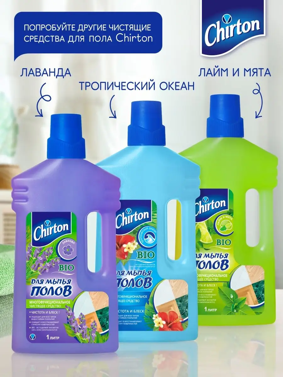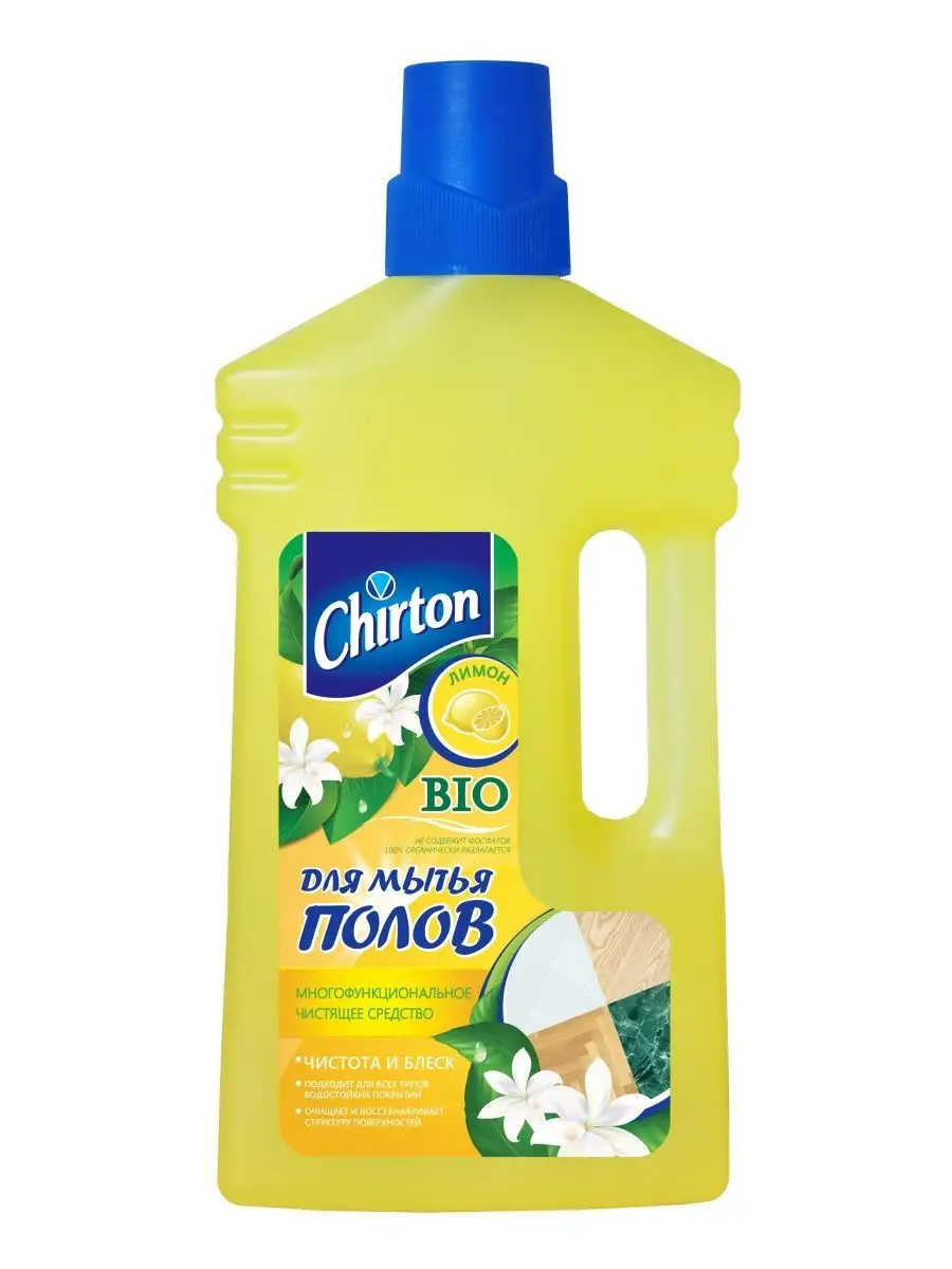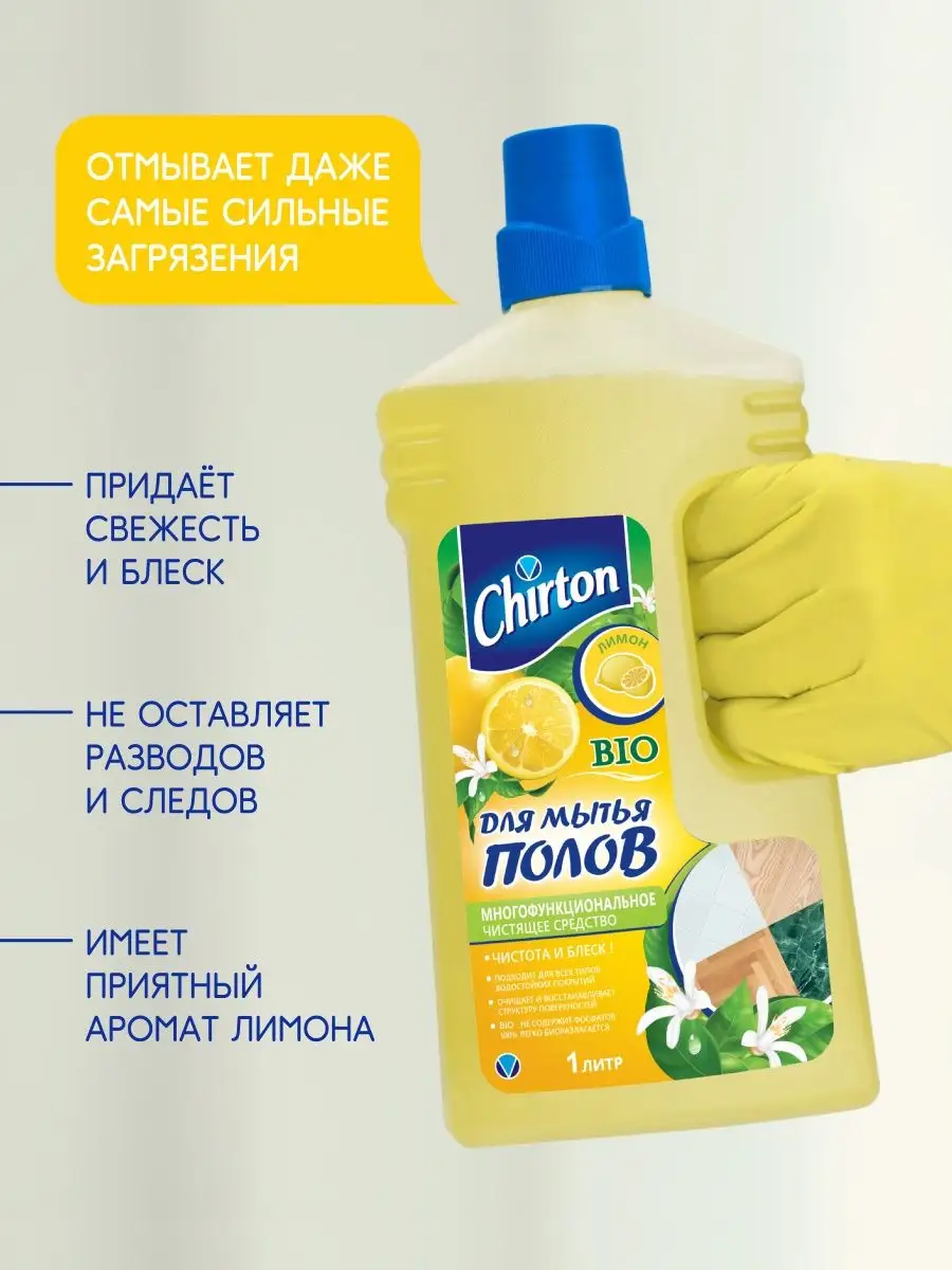Описание: Био средство для уборки пола "Лимон", 1 литр. Универсальное моющее средство предназначено для мытья полов и восстановления структуры из всех типов водостойких покрытий (линолеума, паркета, ламината, кафеля, мрамора и пр). Ароматизированная очищающая жидкость быстро и эффективно отмывает даже самые сильные загрязнения, значительно облегчая процесс уборки. Не оставляет разводов и следов. Придаёт вымытым поверхностям свежесть и блеск. Многофункциональное чистящее средство подходит не только для мытья полов, но и для очистки любых других поверхностей из различных водостойких материалов. Полностью биологически разлагаемо. Имеет удобную бутылку с ручкой и приятный аромат. Chirton (Чиртон) - качественная бытовая химия для дома. Нажмите на логотип продавца ТРАНСАТЛАНТИК ИНТЕРНЕЙШНЛ и подберите хозяйственные товары, необходимые именно вам. В нашем магазине только оригинал! Мы - единственный официальный представитель Chirton в России.