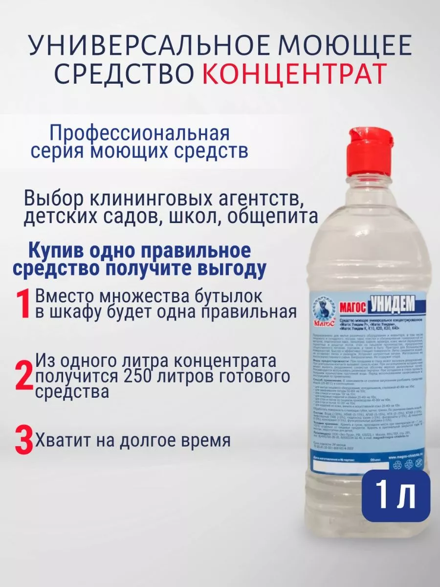 Описание: Магос Унидем - Средство для мытья пола, стен, потолков и пищевого оборудования. Гель концентрат! Средство для мытья пола, стен и оборудования 1л также отлично справляется с удалением жира и загрязнений на кухне. Вы сможете легко очистить плиту, столешницу, холодильник и другую бытовую технику, не прилагая особых усилий. Благодаря его дезинфицирующим свойствам, вы также сможете устранить плесень и грибок в ванной комнате и туалете. Одним из ключевых преимуществ этого средства является его мягкость и безопасность для различных поверхностей. Оно не содержит агрессивных химических веществ, поэтому не повреждает даже самые деликатные материалы, такие как кожа, акрил или декоративный камень. Вы сможете без опасений использовать его для очистки мебели, посуды, стен и других предметов в вашем доме и на работе. Жидкое средство подходит для мытья кофе-машин и холодильников. Нейтральное, универсальное моющее и обезжиривающее средство для различных поверхностей с дезинфицирующими добавками. Моющее средство обладает дезинфицирующим эффектом, устраняет неприятные запахи Мытьё полов и стен в любых помещениях, а также в зоне приготовления и хранения пищевых продуктов. Слабощелочное средство для ежедневной мойки любых помещений и обезжиривания производственного оборудования, Средство для мытья столов, посуды, тары и инвентаря в любом помещении. «Магос Унидем » можно использовать в аппаратах высокого давления. Рабочий раствор нейтральны (рН 7). При очень сильных загрязнениях или пригарах рекомендуется использовать теплую или горячую воду при соотношении 50–150 мл. на 1 л воды и оставить средство на поверхности на 1-5 мин. Обработанную поверхность (при отсутствии контакта с пищей) не следует обильно промывать чистой водой, поскольку оставшийся на поверхности, незаметный для глаза тонкий слой дезинфектанта обеспечит дезинфицирующий эффект во времени.