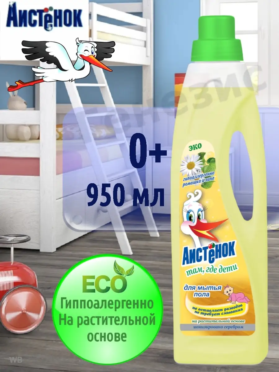 Описание: Специальное гипоаллергенное средство "Аистенок" для мытья полов детских комнат и игровых пространств с первых дней жизни. Обеспечивает и поддерживает чистоту в комнате, выполняя одно из важнейших условий сохранения здоровья ребенка-гигиеническую чистоту. Подходит для мытья любого покрытия пола: линолеума, ламината, паркета, и др. Можно применять в быту, лечебно-курортных, детских, дошкольных, школьных и других аналогичных учреждениях. Нейтральное, на растительной основе, с нежным весенним ароматом, а ионы серебра являются идеальной природной защитой от бактерий.