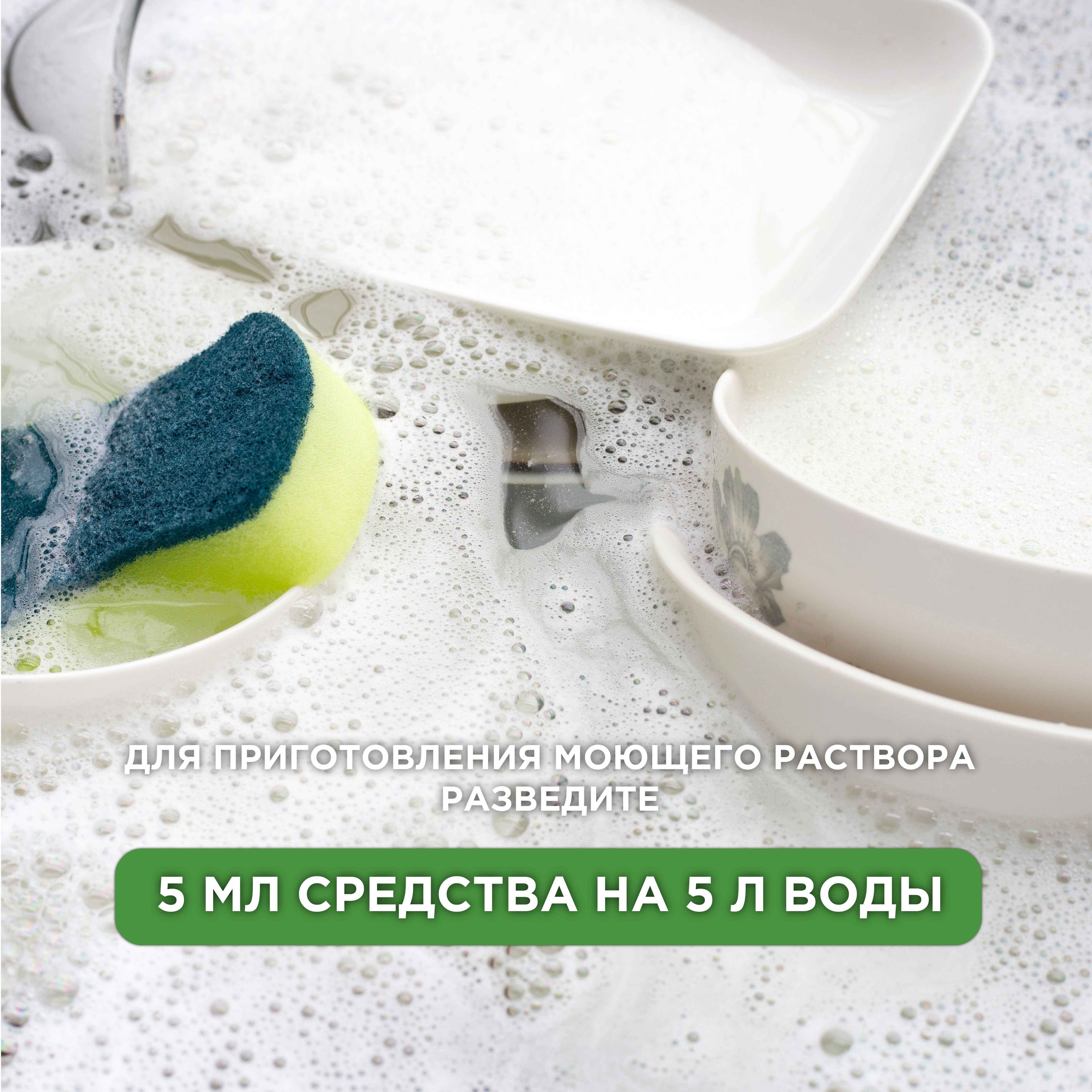 РЕКОМЕНДАЦИИ ПО ПРИМЕНЕНИЮ: Нанести небольшое количество средства на влажную губку, вспенить, вымыть посуду, тщательно промыть водой. При приготовлении моющего раствора используйте 5 мл средства на 5 литров воды.