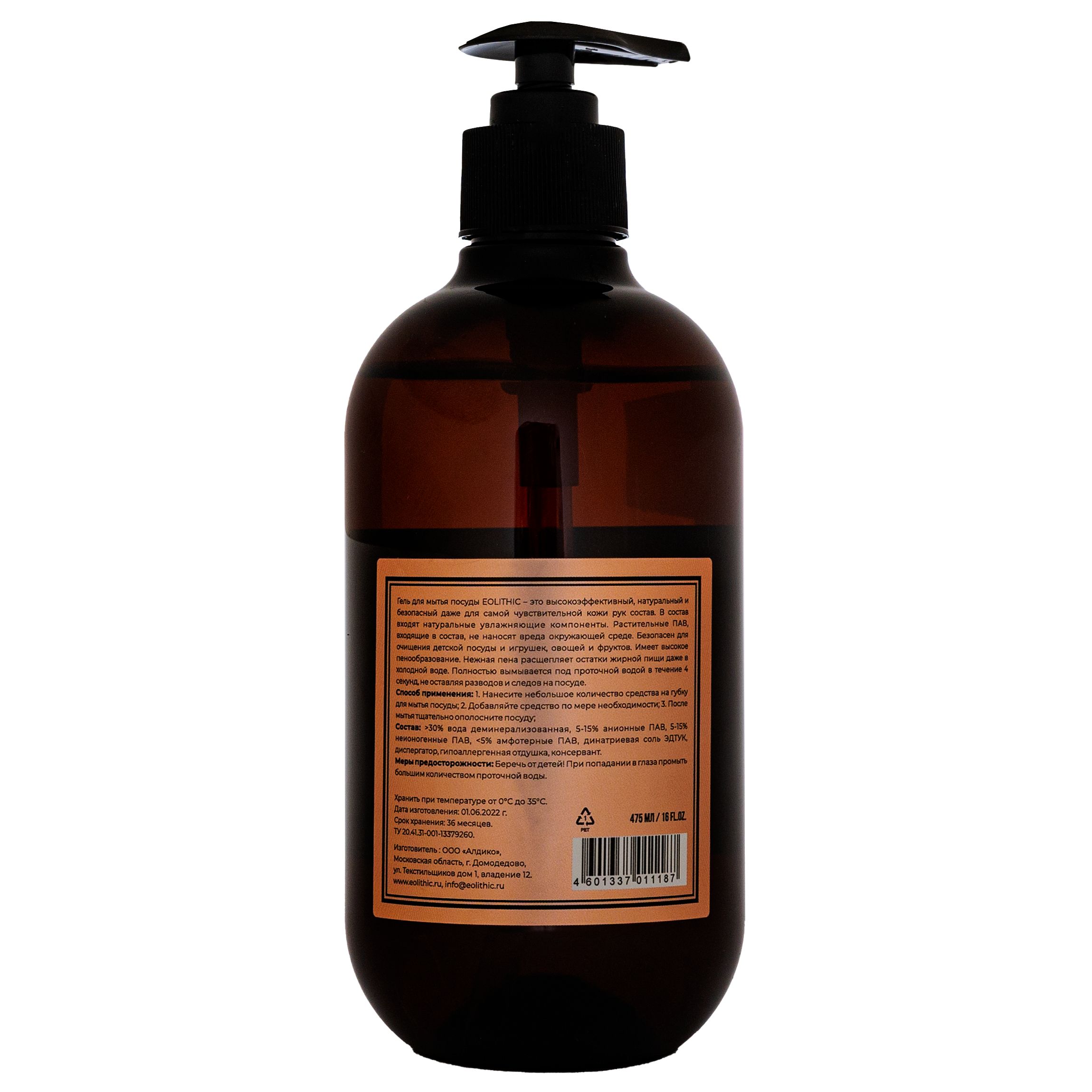Описание: Гель для мытья посуды EOLITHIC - это высокоэффективный, натуральный и безопасный даже для самой чувствительной кожи рук состав. В состав входят натуральные увлажняющие компоненты. Растительные ПАВ, входящие в состав, не наносят вреда окружающей среде. Безопасен для очищения детской посуды и игрушек, овощей и фруктов. Имеет высокое пенообразование. Нежная пена расщепляет остатки жирной пищи даже в холодной воде. Полностью вымывается под проточной водой в течение 4 секунд, не оставляя разводов и следов на посуде.