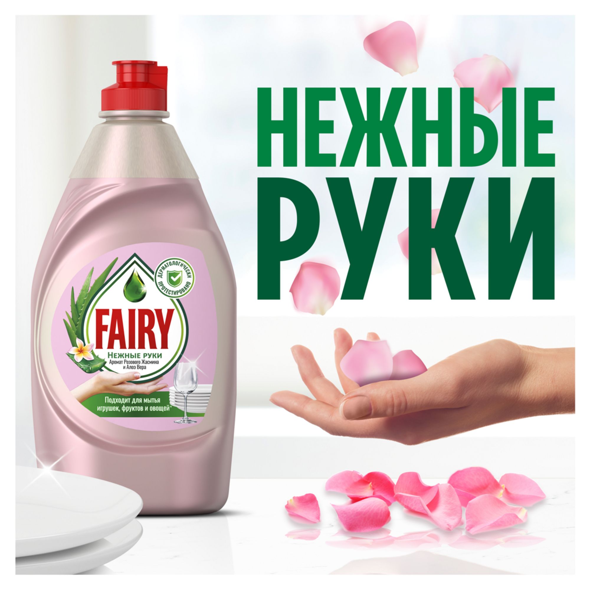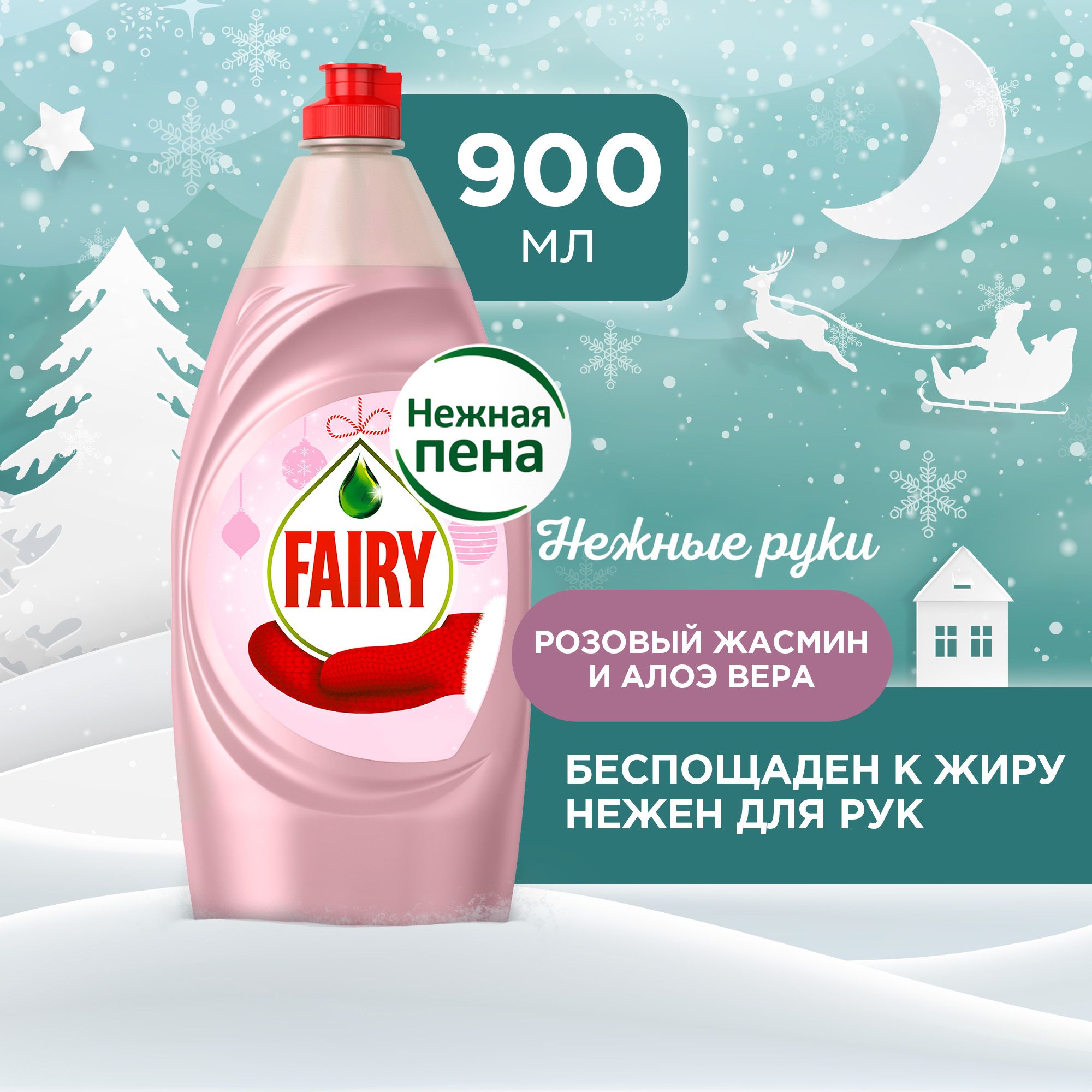 Средство для мытья посуды Fairy Нежные руки. Розовый Жасмин и Алоэ Вера, 900 мл