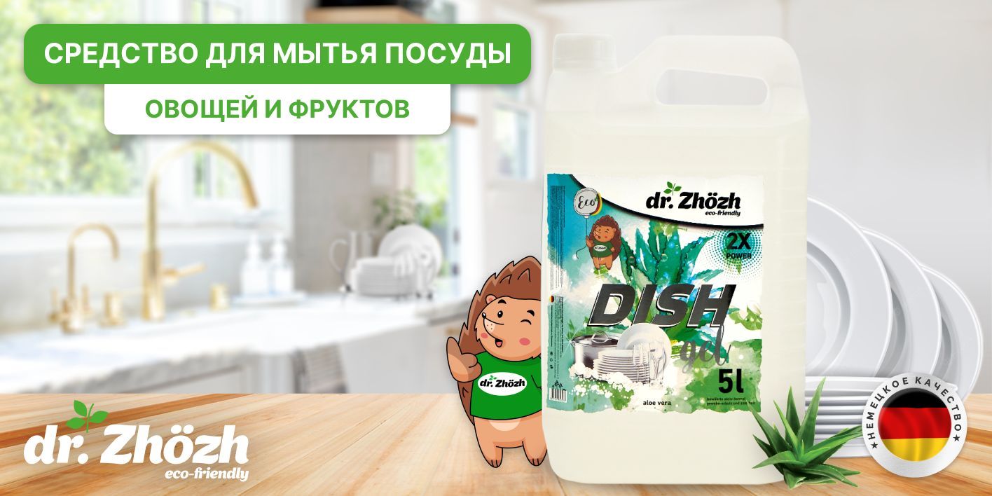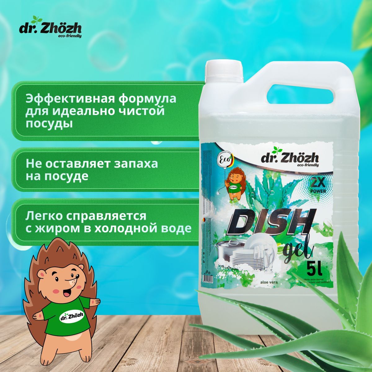 Средство для мытья посуды, фруктов, овощей и детских принадлежностей dr.Zhozh, с ароматом алоэ, 5 литров