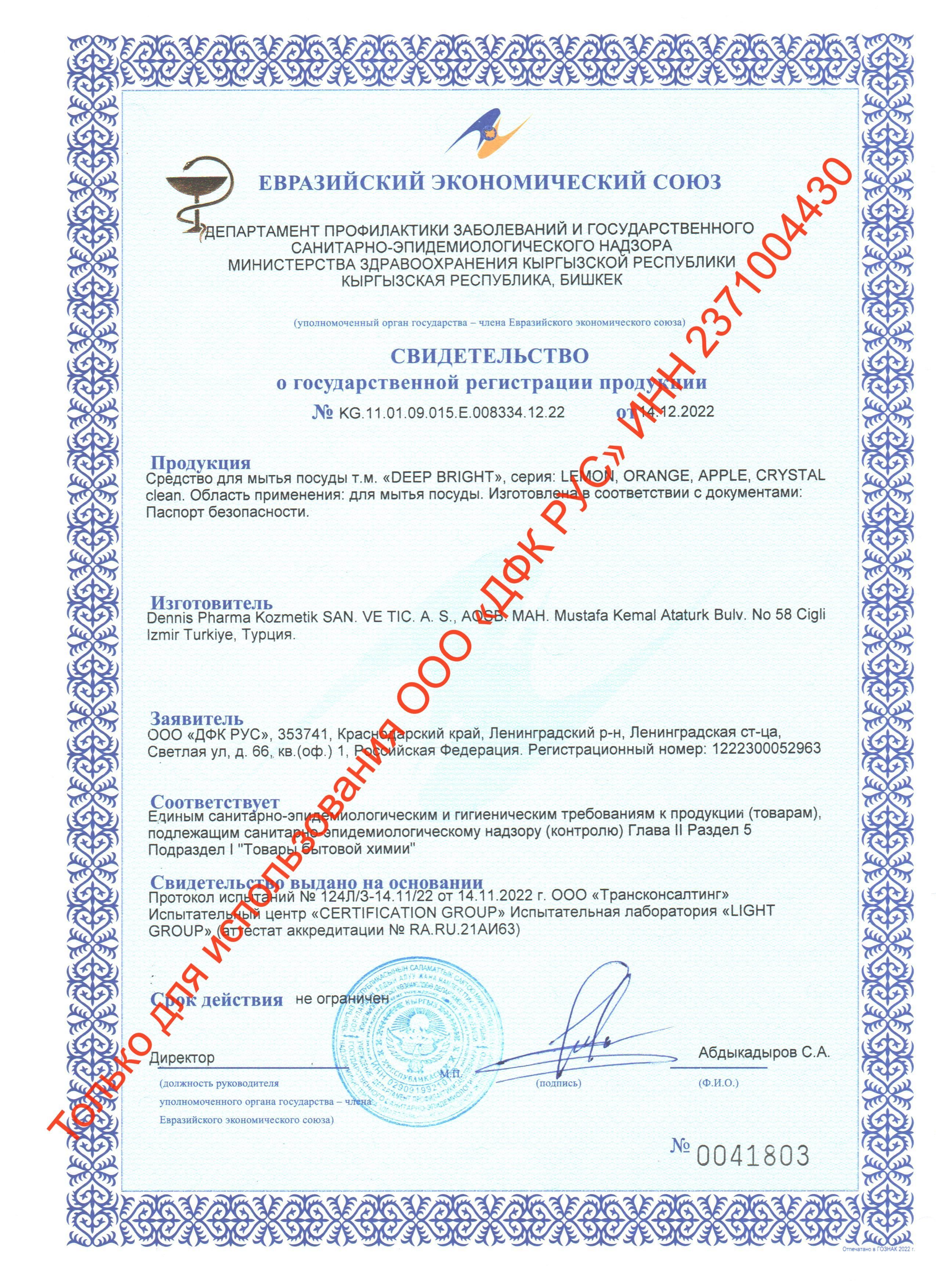 Назначение моющего, чистящего средства: Для нержавеющей стали, Для посуды, Против запахов, Для дезинфекции, Для мытья овощей и фруктов