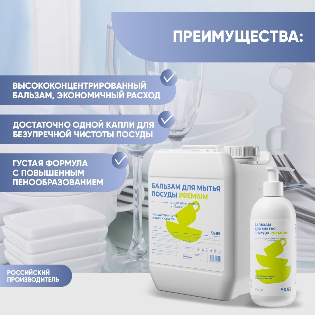 Описание: Высококонцентрированный бальзам для мытья посуды Sojel с густой формулой и повышенным пенообразованием. Всего одна капля средства создает обильную пену, способную безупречно чисто вымыть посуду. Гелеобразная консистенция образует плотную, долгоиграющую пену, которая превосходно расщепляет даже самые сложные жировые загрязнения. Концентрированный гель полностью смывается водой, не оставляет разводов на посуде, подходит для мытья фруктов и овощей. Жидкость для мытья посуды без труда удаляет жир и остатки пиши с поверхности, как в горячей, так и в холодной воде. Моющее средство для посуды эффективно против засохшего жира и других стойких и сложных пищевых загрязнений. Благодаря ухаживающему и увлажняющему комплексу гель для мытья посуды не вызывает раздражение кожи рук. Чистящее средство для посуды легко смывается при полоскании. Удобный дозатор помогает экономично использовать средство для посуды. Вы можете не ограничиваться только тарелками, а также вымыть столовые приборы, кастрюли и сковородки.