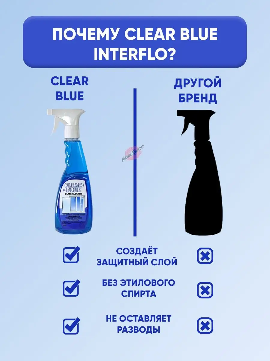 Комплектация Interflo - Средство для мытья зеркальных поверхностей стекол витрин"Clear Blue" 500 мл - 1 шт