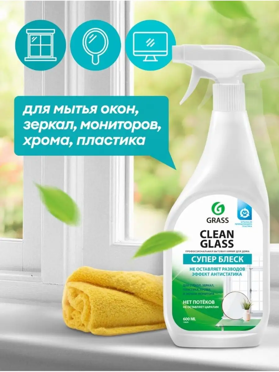 Описание: Спрей для стекол от компании ГРАСС. Спрей для стекол, зеркал, пластика, хрома, кафеля. Универсальное чистящее средство для окон, подходит для стекол и пластика. Не оставляет подтеков, разводов, экономичен в применении. Придает поверхностям анти-статические свойства. Может применяться в офисе для чистки мебели, обновления мониторов, стекол, зеркал, торгового оборудования. Готов к применению. Со средством Clean Glass мытье окон в вашем доме станет проще. Состав: ≥30% очищенная вода; <5%: изопропиловый спирт, неионогенные ПАВ, ароматизирующая добавка, краситель, метилхлороизотиазолинон, метилизотиазолинон.