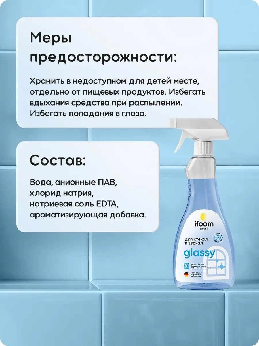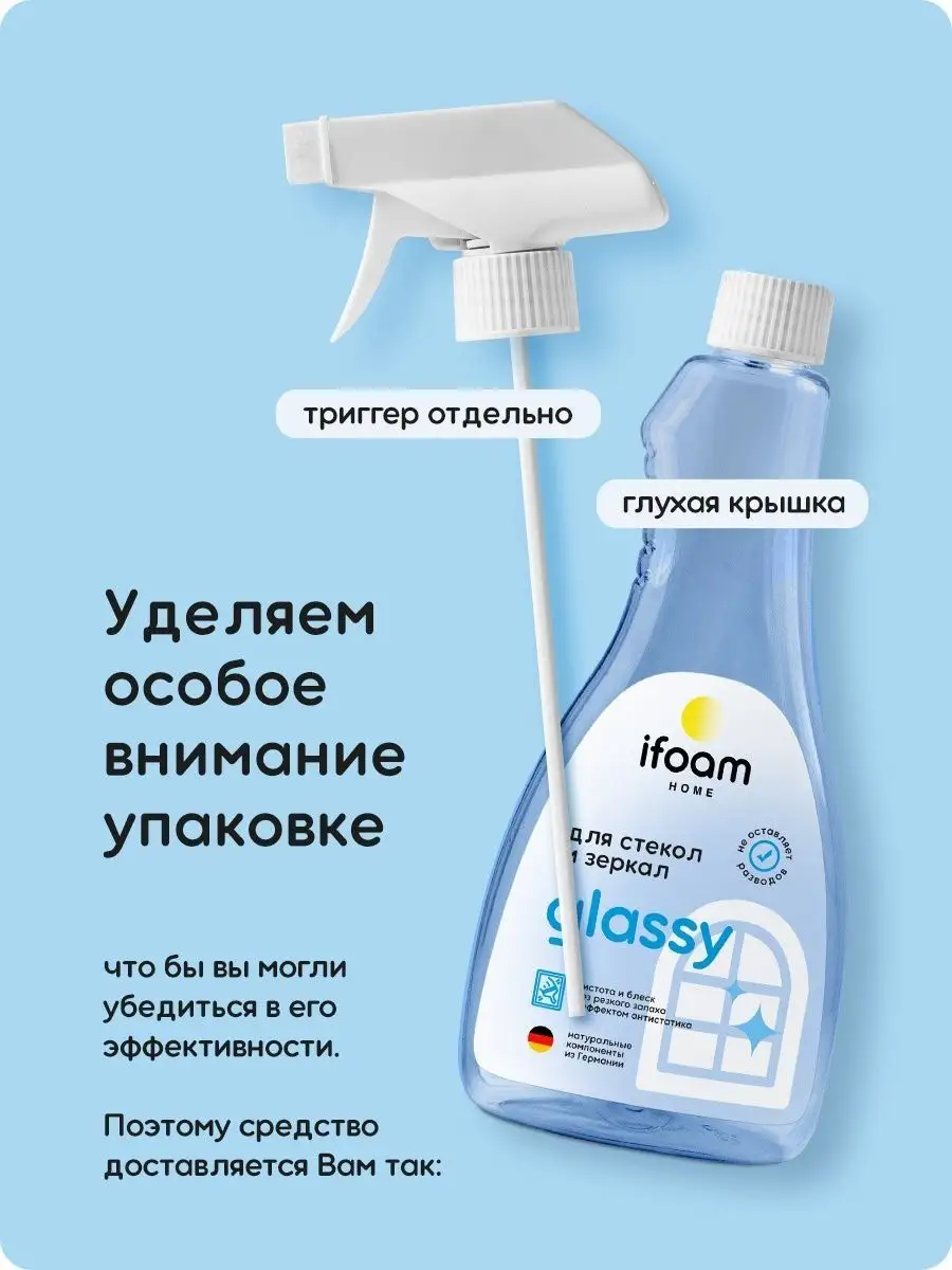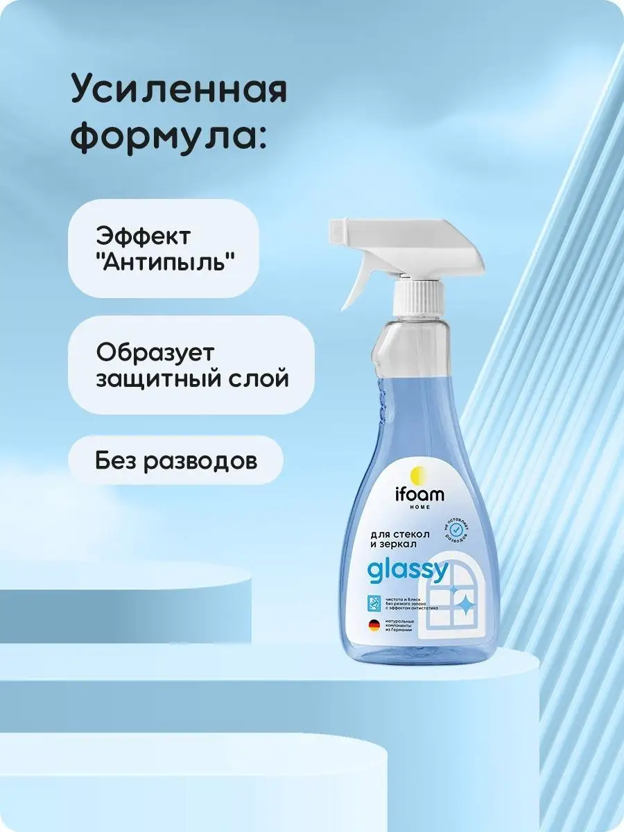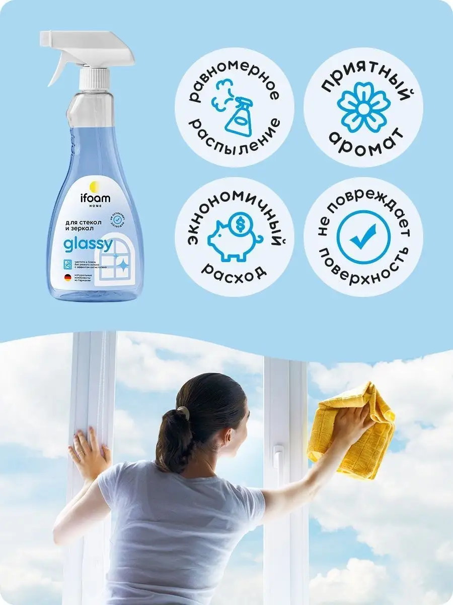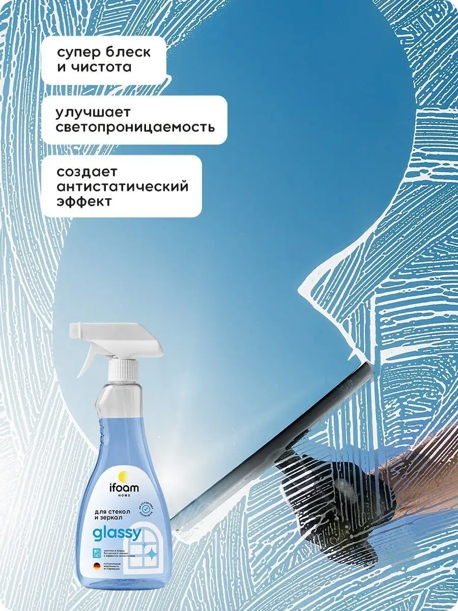 Описание: Средство для мытья окон, зеркал, стекол, пластика, хрома, оптики Glassy - чистота и блеск без разводов, приятный легкий аромат, эффект антистатика. Не требует смывание водой. Легко и быстро очищает стеклянные, тонированные и зеркальные поверхности от загрязнений разного типа: пыль, отпечатки пальцев, следы от капель и тд Подходит для робота мойщика. Моющая жидкость относится к категории - универсальные чистящие очистители. Идеально для уборки дома, квартиры, ванной комнаты, санузла, туалета, кухни. Хозяйственные товары. Спрей для очистки стёкол и зеркал. Работает как антипыль. Спрей применим в любых помещениях: дом, офис, ресторан, кофейня, хостел, отель, автомобиль. Бытовая химия от российского производителя.