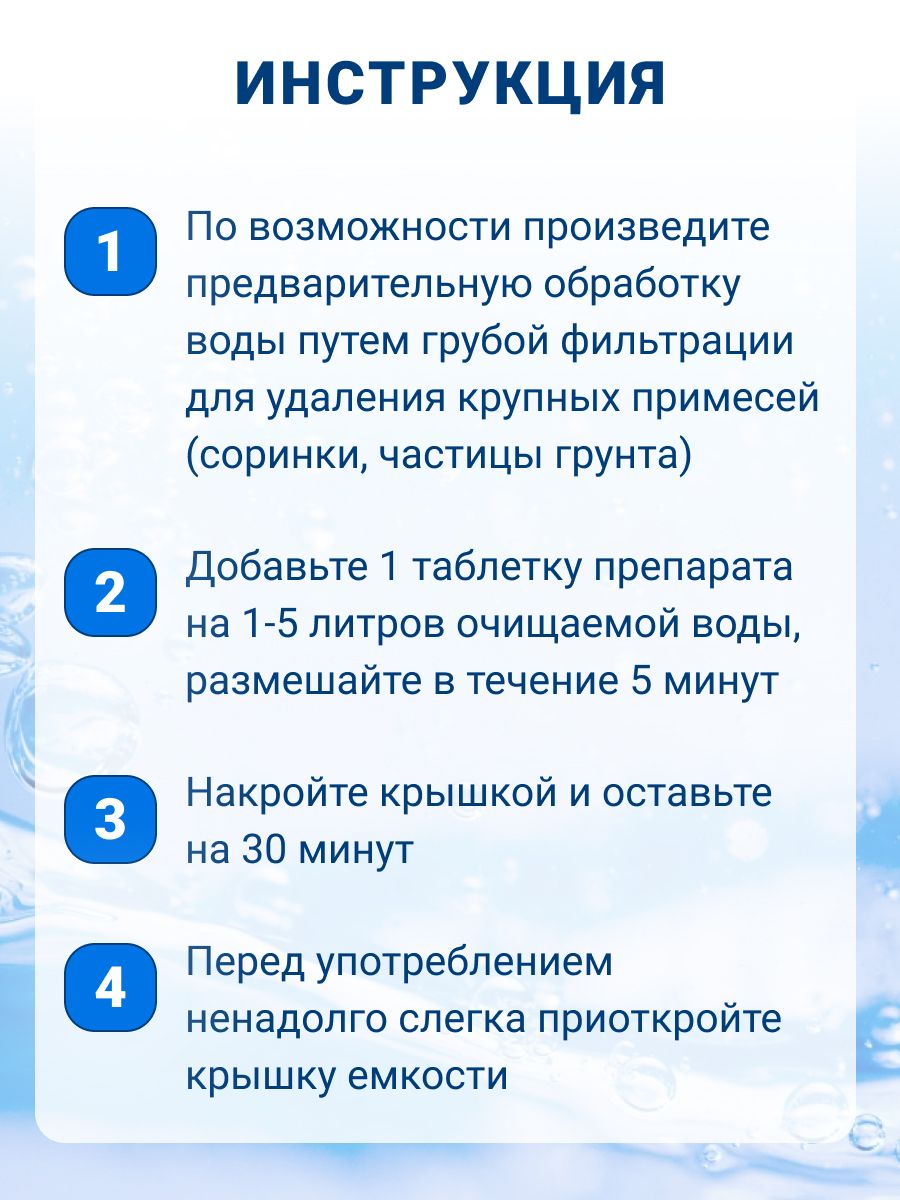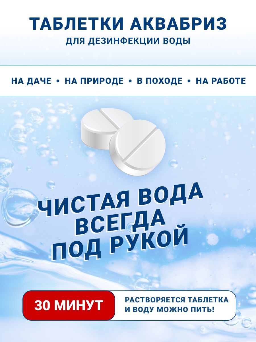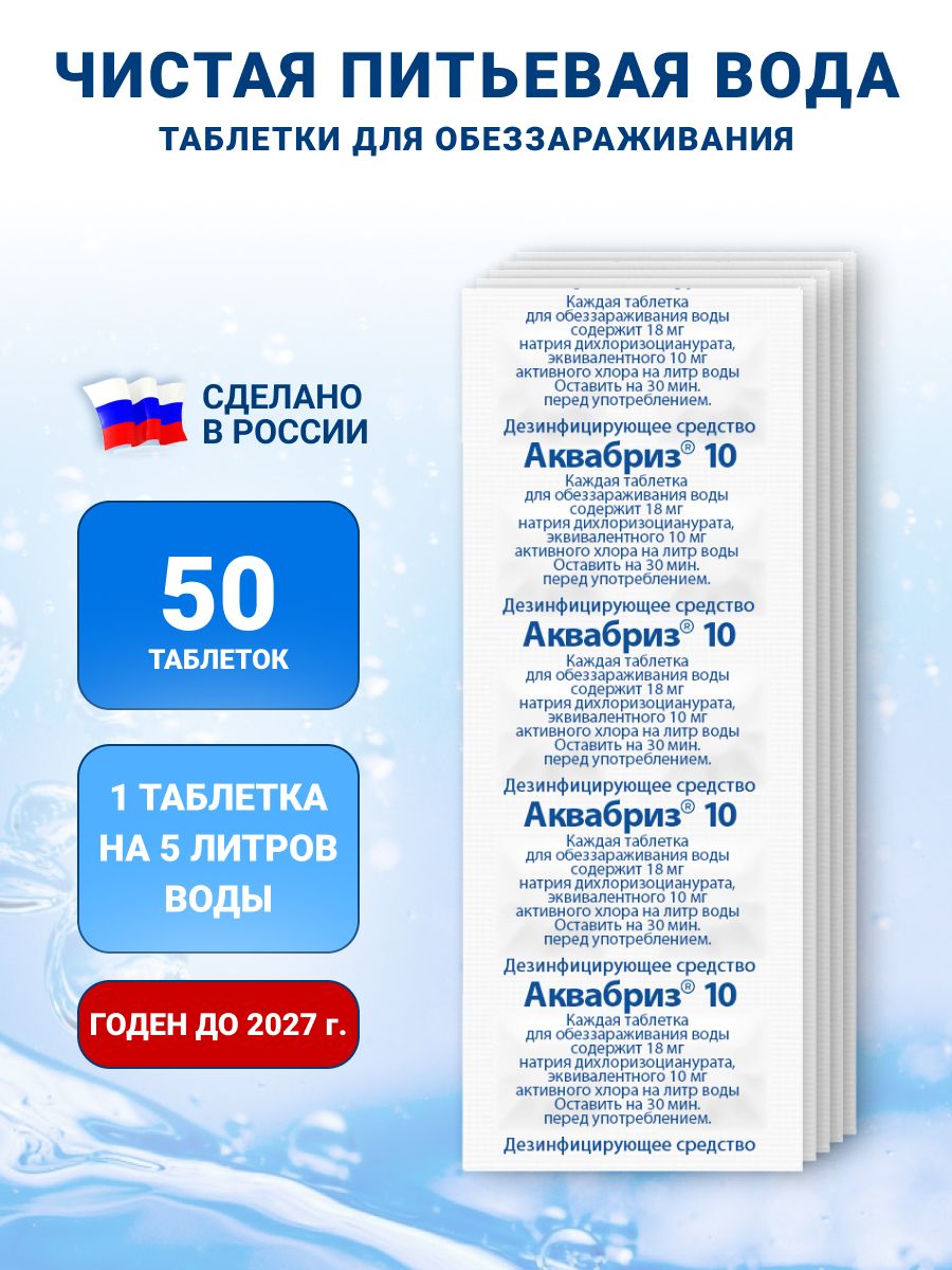 Таблетки для обеззараживания питьевой воды Аквабриз 10мг. 5 блистеров по 10 табл. = 50 таблеток.