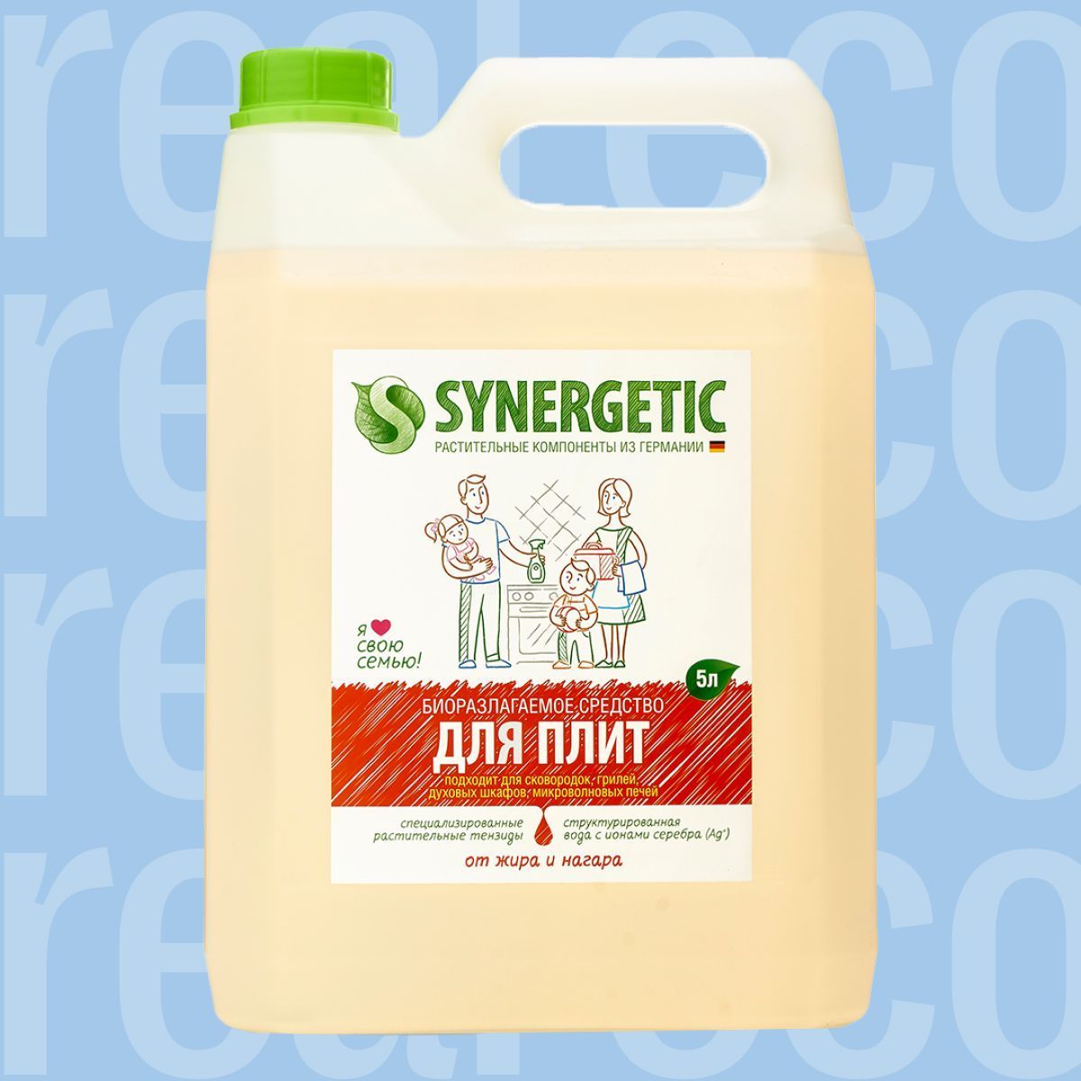 Описание: Биоразлагаемое средство для плит от жира и нагара SYNERGETIC - высокоэффективное щелочное средство для удаления жира, нагара, копоти, масляных пятен и накипи с плит и других кухонных поверхностей. Комплекс биоразлагаемых растительных тензидов и соды справляется с органическими загрязнениями за считанные минуты. Кальцинированная сода создает необходимую для расщепления пятен щелочную среду и растворяет масложировые компоненты загрязнений. Средство подходит для металлических, стеклокерамических, эмалированных плит и поверхностей, сковородок, противней, кастрюль, шампуров, решёток-гриль, пароконвектоматов, микроволновых печей, духовых шкафов, каменных столешниц, керамической плитки. Средство устраняет неприятные запахи, эффективно даже в холодной воде, полностью смывается, не оставляя разводов и царапин. Оно подходит для уборки в детских учреждениях, а также безопасно для септических установок. Попадая в среду септика, средство "понятно" для микроорганизмов и без труда распадается на простые соединения.