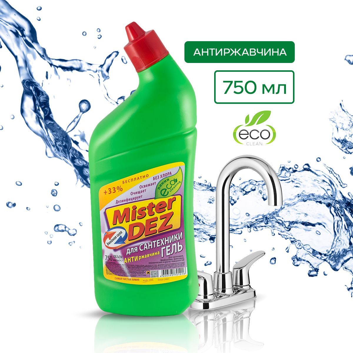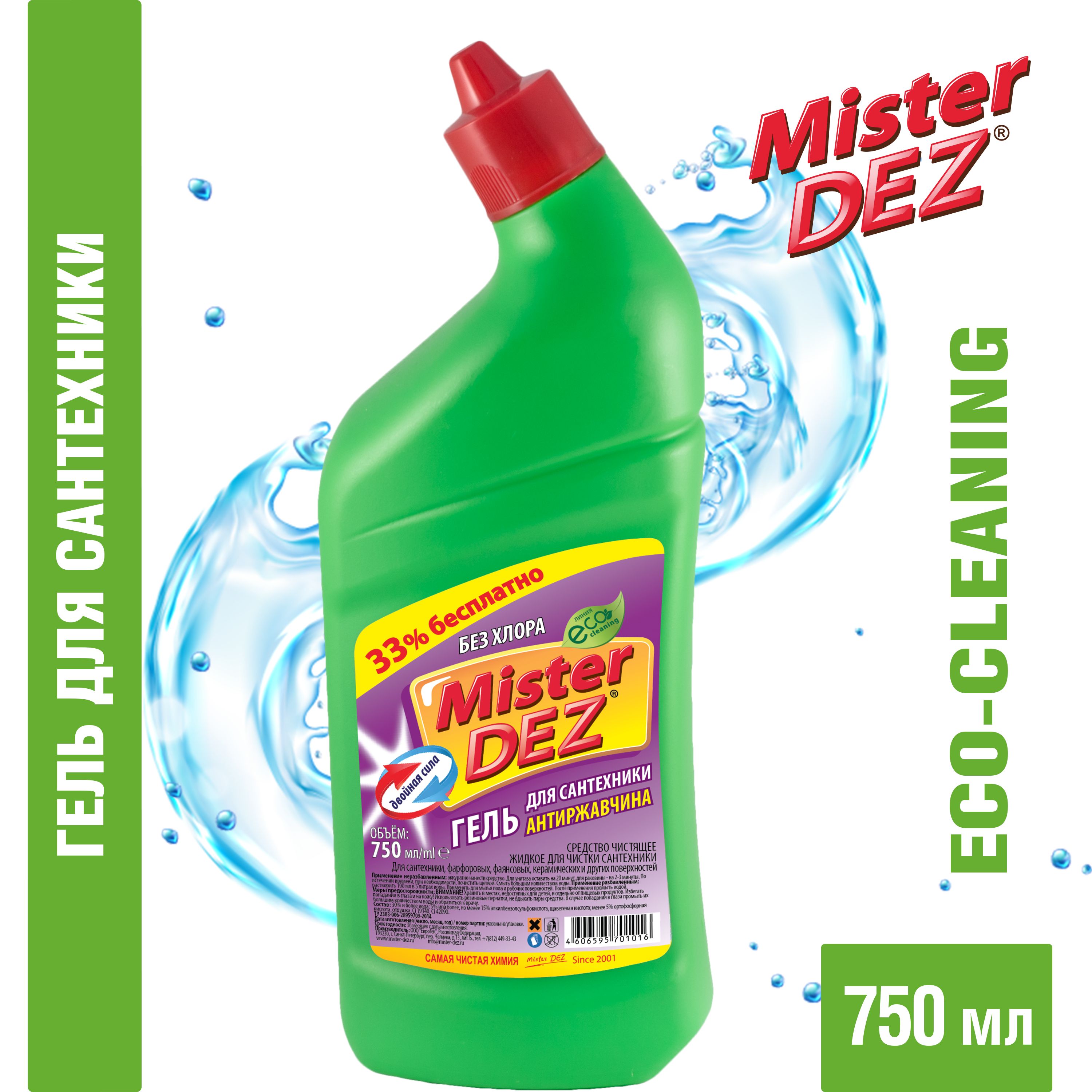 Средство для сантехники Mister Dez Eco-Cleaning "Двойная сила" кислотное (без хлора), 750мл