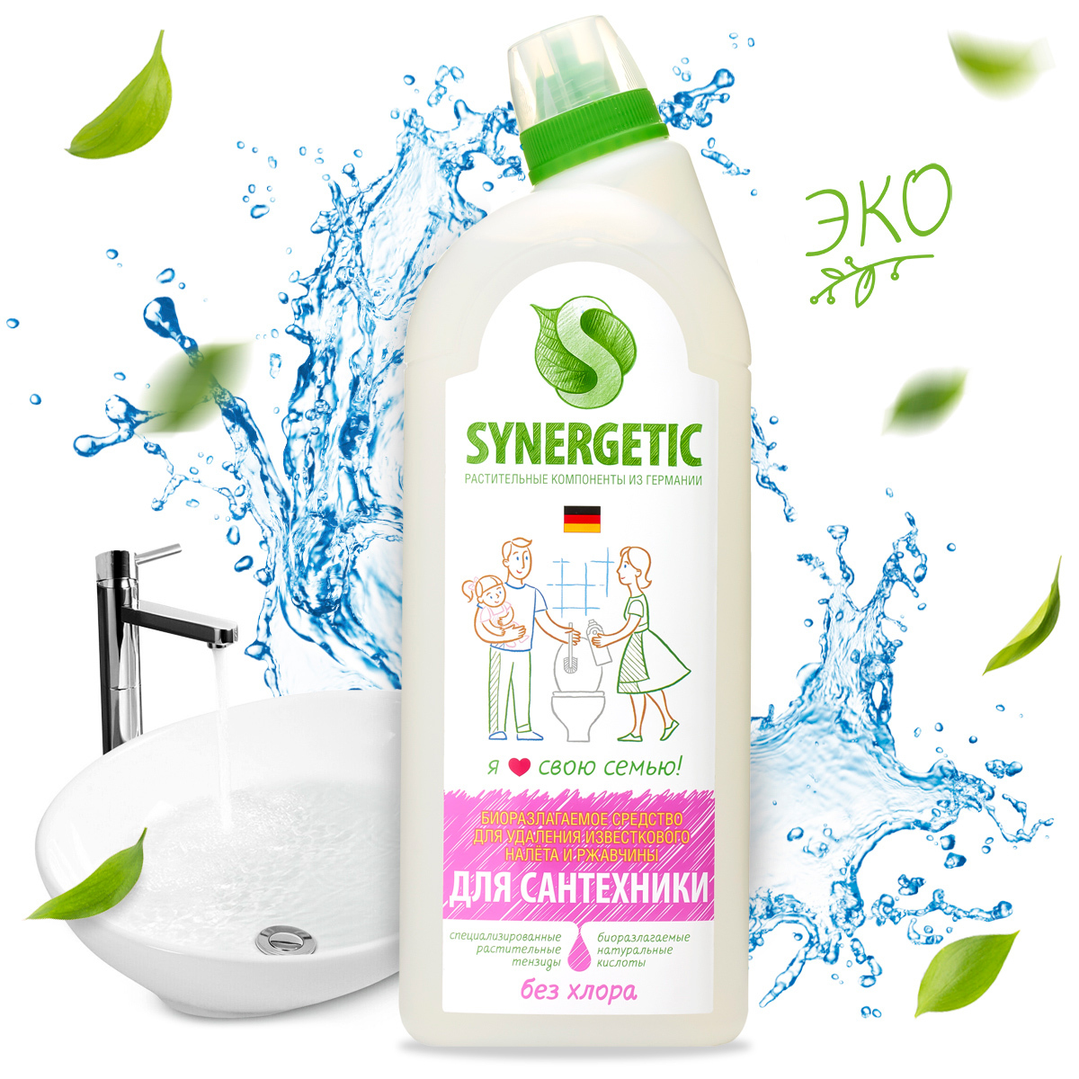 Средство для сантехники Synergetic, для ванн, раковин, душевых кабин, 1 л