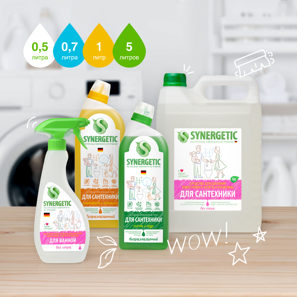 Описание: Концентрированное биоразлагаемое средство для мытья сантехники SYNERGETIC – универсальное кислотное средство, подходящее для ежедневной уборки всех видов поверхностей, устойчивых к кислотным моющим средствам, в ванных комнатах и санузлах. Комплекс натуральных кислот (лимонной, гликолевой и молочной) и Н-тензидов, полученных из растительных масел, устраняет известковый налет, ржавчину, камень и минеральные загрязнения даже в холодной и жесткой воде. Средство с антибактериальным эффектом убивает микробы и бактерии, а также эффективно устраняет неприятные запахи. Смывается на 100% и не остается на поверхностях. Гипоаллергенная отдушка на основе эфирных масел сандала, бергамота, мяты и лимона придает средству и очищенным поверхностям приятный свежий аромат. Не содержит красителей.