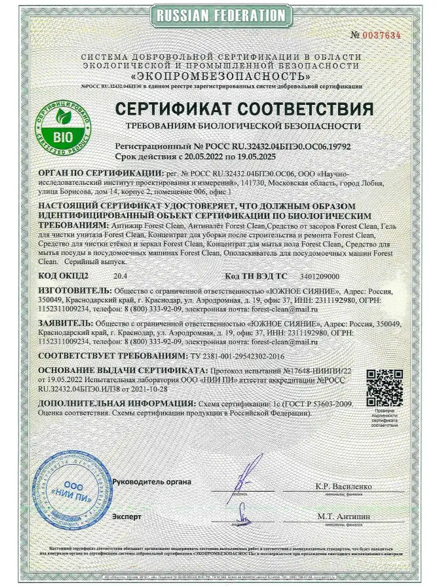 Описание: Forest Clean Средство для чистки стёкол и зеркал 500 мл. Универсальное Гипоаллергенное Антистатическое Биоразлагаемое средство для чистки стеклянных, пластмассовых, керамических и хромированных поверхностей. Также применяться чистки экрана монитора и телевизора, корпусной мебели и торгового оборудования. Эффективно и легко удаляет жир и грязь с поверхностей. Чистит до блеска, не оставляет подтёков и разводов. Образует защитную пленку и не оставляет царапин. Средство содержит спирт максимальной степени очистки, который образовывает пленку на поверхности, усиливающие эффективные антистатические средства. Средство для чистки стёкол и для зеркал придает поверхности антистатические свойства, путем применения соответствующих антистатических добавок, таких как поверхностно - активные вещества, снижающие полярность поверхностей. Гипоаллергенная отдушка на основе эфирных масел придает средству свежий, приятный аромат и подходит даже для людей с чувствительной кожей. Гипоаллергенное средство Forest clean содержит компоненты, которые оказывают минимальное раздражающее действие, не способные вызывать аллергию. Биоразлагаемое средство для чистки стекол и зеркал безопасен для человека, природы и животных. Биоразлагаемые ПАВ не накапливаются в экосистеме, окисляясь в безвредные вещества под воздействием воды, солнца и воздуха. Благодаря высокой степени концентрации средство очень экономично в применении. Теги - Forest clean, средство для стекол и зеркал, для стекол и зеркал, средство для мытья окон, для уборки, для уборки дома, чистящее средства, средство для мытья стекол и зеркал, жидкость для стекол и зеркал, средство для окон и зеркал, товары для дома, бытовая химия, хозяйственные товары, антидождь, для мытья окон, мытье окон, моющие средства, средства для уборки, товары для уборки, средство для уборки, уборка дома, для мытья стекол, универсальное чистящее средство, бытовая химия для дома, жидкость для уборки, для мытья окон средство, для чистки окон, стекло.