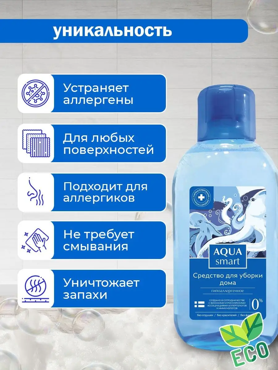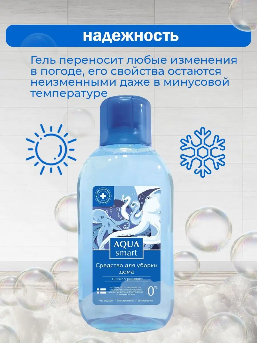 Описание: Универсальное средство для уборки дома. Гель для уборки обеспечит безопасную чистоту и свежесть вашего дома без парабенов, отдушек и красителей. Средство предназначено для уборки, дезинфекции и очистки поверхностей. Экологически чистая и безопасная формула геля подходит для обработки детских комнат, кухонных помещений и гостиных. Профессиональное средство для уборки не требует смывания и не оставляет разводов. Гель для мытья полов эффективно удаляет пятна и защищает от бактерий благодаря дезинфицирующим свойствам. Гипоаллергенное средство для уборки с антисептическим эффектом не вызывает аллергических реакций у детей и взрослых. Универсальный гель содержит в составе натуральные компоненты и ПАВ (поверхностно-активные вещества), способные справиться с пылью и загрязнениями. Средство для мытья пола применимо для деревянных полов, плитки, ламината и других напольных покрытий. Гелиевая консистенция средства для уборки экономично расходуется, и поэтому гель выгодно применять. Средство AQUA smart входит в линейку гипоаллергенных чистящих средств для дома от российского производителя ХИМРОС.