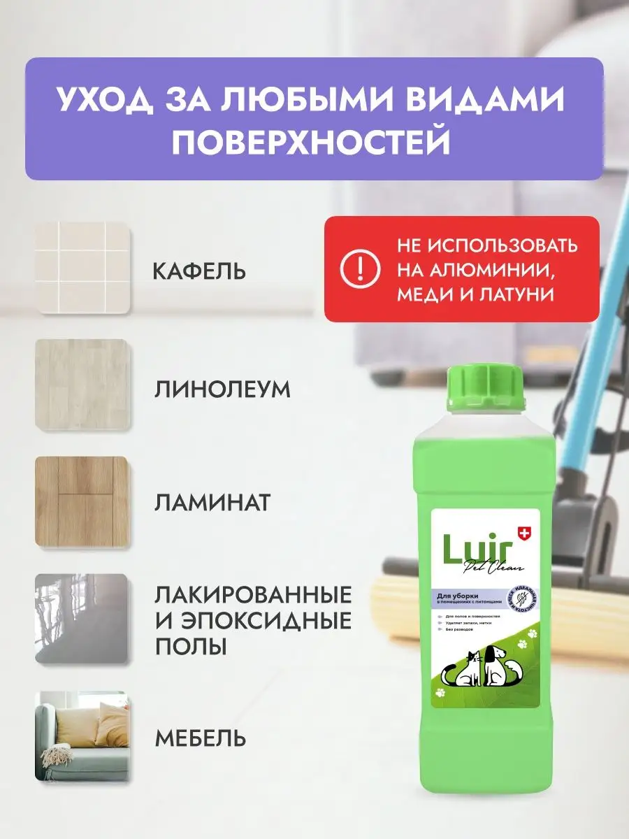 Средство для уборки и мытья полов в поещениях с животными
