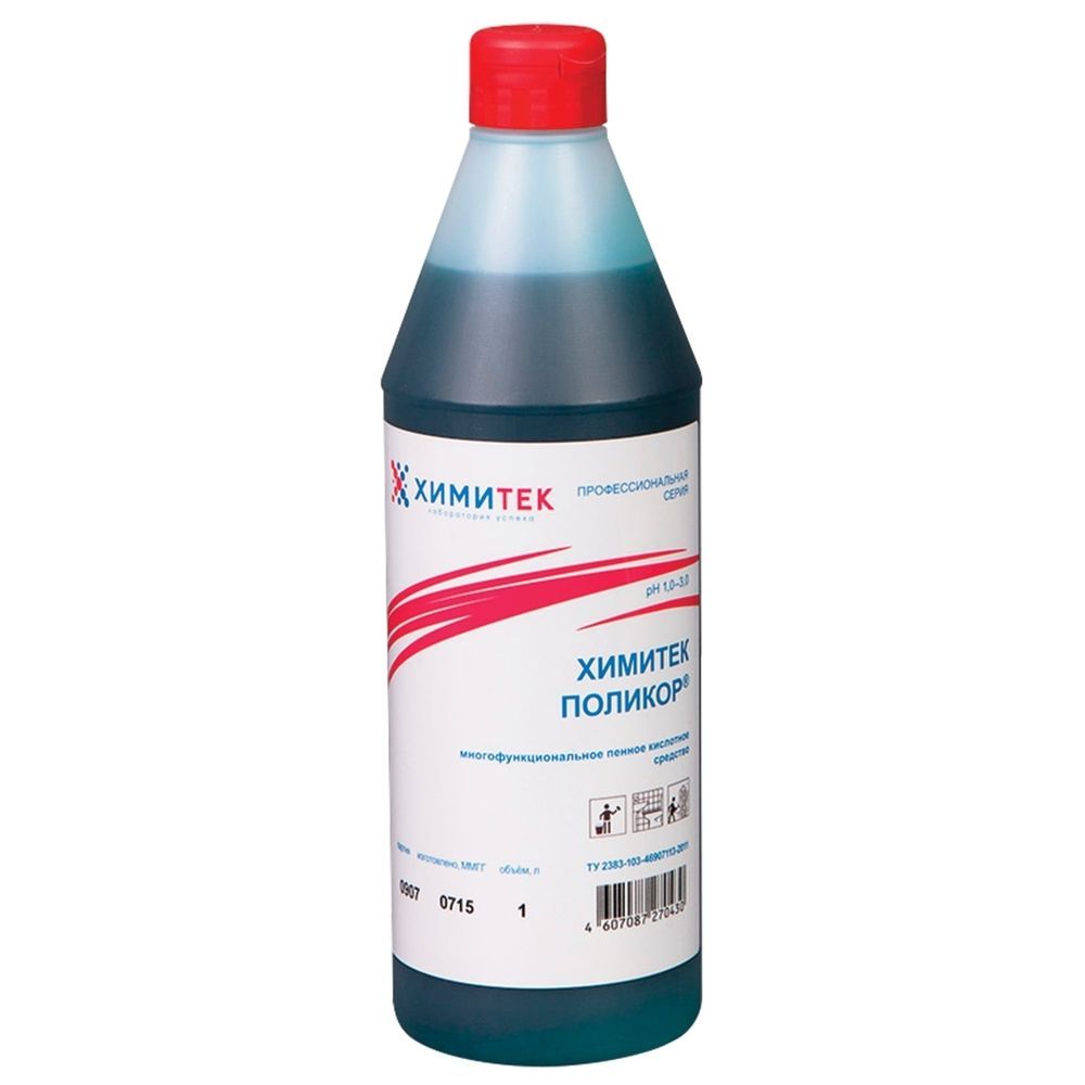 Средство для уборки сантехнических блоков Химитек 1 л, ПОЛИКОР, кислотное, пенное, концентрат (80105)