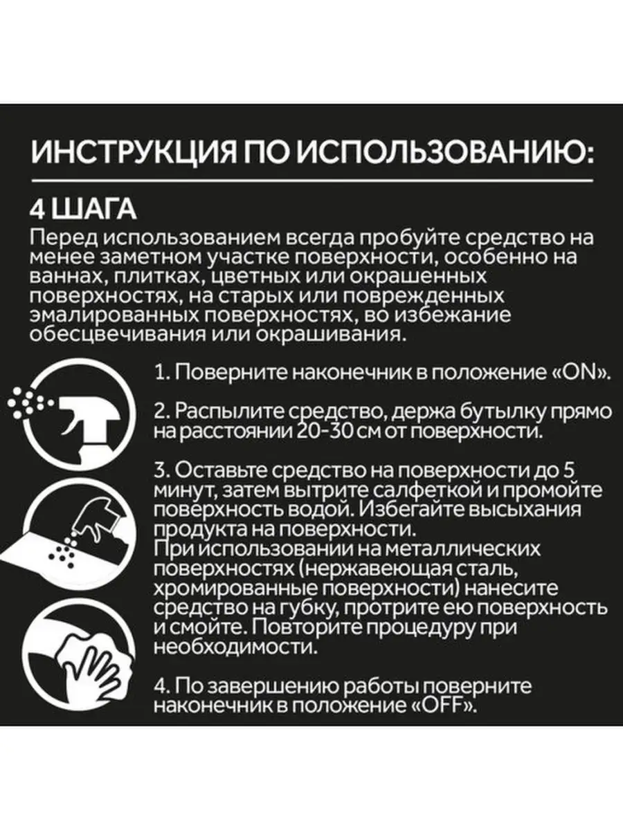 Описание: Cillit Bang Удаление черной плесени, 750 мл курок Мощное средства Cillit Bang УДАЛЕНИЕ ЧЕРНОЙ ПЛЕСЕНИ. BANG и плесени как не бывало!Попробуйте по-настоящему мощное средство CILLIT BANGУДАЛЕНИЕ ЧЕРНОЙ ПЛЕСЕНИ! Благодаря мощной формуле оно эффективно устраняет плесень и грибок, теперь не нужно прикладывать усилия для того, чтобы оттереть въевшееся пятно! Идеальное средство для сырых поверхностей, подвергающихся образованию плесени и грибка. Идеально подходит для уборки ежедневных или застарелых пятен, в том числе черного плесневелого налета и грибка, для различных материалов и поверхностей, таких как раковины, ванны, душевые кабины, рабочие поверхности на кухне и др.