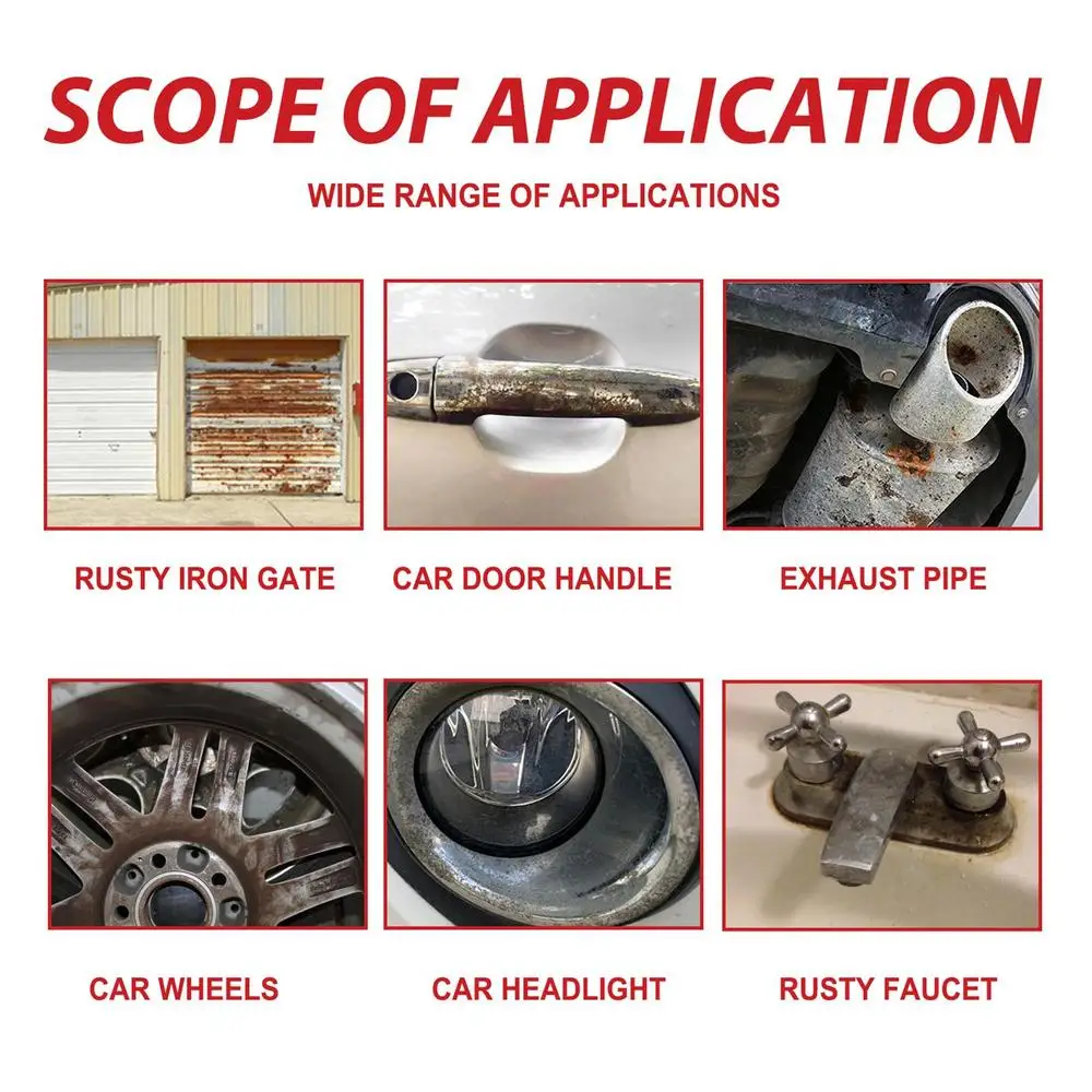 5、[ Wide Range of Applications ] Rust Remover Primer is extensively used for door handles, exhaust pipe wheels, fronts, lights, and faucets, quick and easy to remove rust, is suitable for home, garage, office, car, bathroom, and garden.