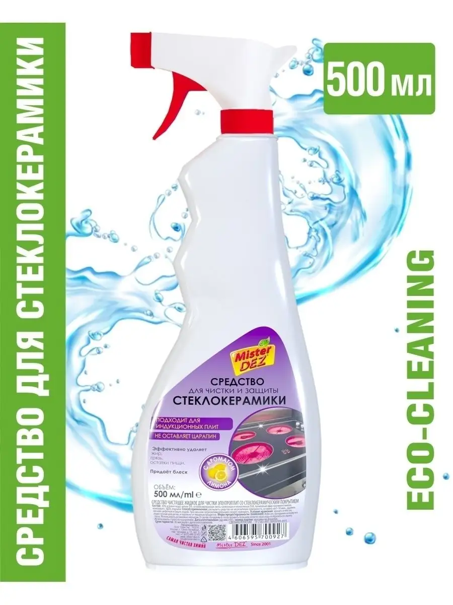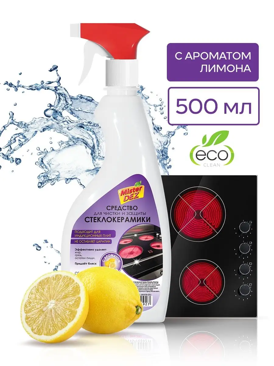 Описание: Жидкое средство для стеклокерамических плит "Лимон", 500 мл Mister Dez Eco-Cleaning идеально для чистки, защиты и ухода стеклокерамики. Средство для плиты эффективно удаляет жир, грязь, остатки пищи; подходит для индукционных плит; бережный уход (не содержит щелочи); без абразивов, не оставляет царапин; pH-нейтрален; с приятным ароматом лимона. Товар сертифицирован. Средство для мытья плит входит в линейку Eco Cleaning - не содержит вредные и опасные для окружающей среды химические вещества. Попробуйте другие чистящие средства для уборки дома и на кухне, в ванной и душе Мистер Дез: для стекол и зеркал, для стирки, сантехники, душевых кабин, унитаза, посудомоечных и стиральных машин. Средство для стеклокерамики это идеально средство антижир для плит, не царапает плиты, не имеет резкого химического запаха, не оставляет разводов, хорошо смывается. Возможно, Вы искали: мистер дез, mister dez professional, мистер дез профешионал, mister dez eco-clining, мистер дез эко-клининг, mister dez eco, мистер дез эко, мистер дес, мистер дэз.
