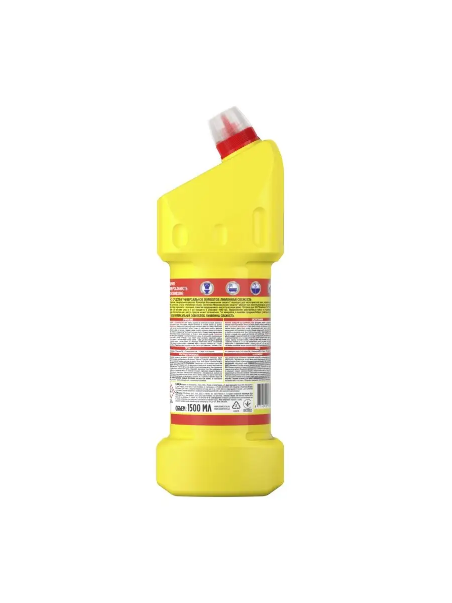 Описание: Универсальное чистящее средство Domestos Лимонная свежесть помогает обеспечивать в доме блестящую чистоту и защиту от микробов надолго. Доместос Лимонная свежесть — это густое и экономичное средство, которое имеет гелевую текстуру и помогает устранять неприятные запахи, бактерии, грибки, вирусы и споры во всем доме. Чистящий гель для уборки Domestos универсальный можно купить и использовать для уборки и очищения туалета, ванны, раковины, плитки, рабочих поверхностей на кухне и полов. Универсальный гель Domestos Лимонная свежесть: -имеет удобный изогнутый дозатор и гелевую текстуру для экономичного расхода; -подходит для мытья различных поверхностей дома и отбеливания тканей; -может использоваться для септиков; -эффективно отчищает грязь и борется с неприятными запахами; -помогает предотвращать появление известкового налета; -уничтожает бактерии, грибки, вирусы и споры. Доместос универсальный чистящий гель Лимонная свежесть оснащен специальном колпачком от открывания детьми. Чтобы открыть, надавите на уплотнения по бокам колпачка и поверните против часовой стрелки. Чтобы закрыть, поверните колпачок по часовой стрелке до щелчка. Применение Доместос Лимонная свежесть в неразбавленном виде: нанесите под ободок унитаза, оставьте на продолжительное время или на ночь, смойте водой; нанесите на поверхность раковины или ванны, обработайте с помощью щетки, через 5 минут тщательно смойте; налейте Domestos в сливное отверстие, оставьте на 5 минут, затем промойте водой. Применение в разбавленном виде: 4 колпачка Domestos на 5 л воды для мытья полов, рабочих поверхностей и кафеля; 2 колпачка геля на 3 литра воды для обработки губок для мытья посуды. Хранить в сухом защищённом место без воздействия прямых солнечных лучей при температуре от 0 до +25 °С
