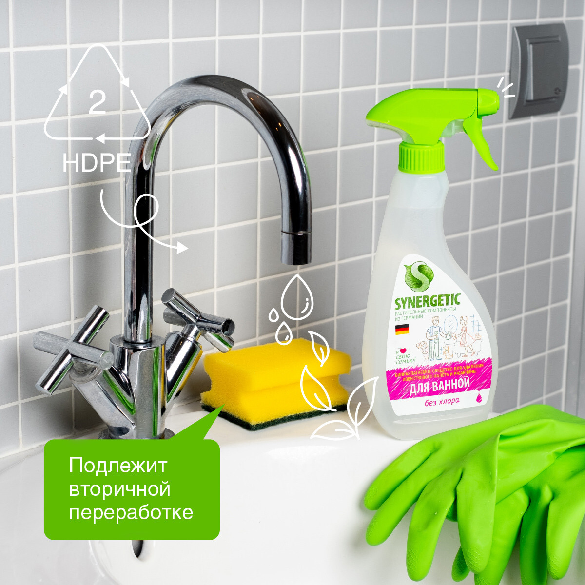 Средство для унитаза, для чистки сантехники SYNERGETIC чистящее для ванной и туалета, концентрированное, без хлора, 0,5л