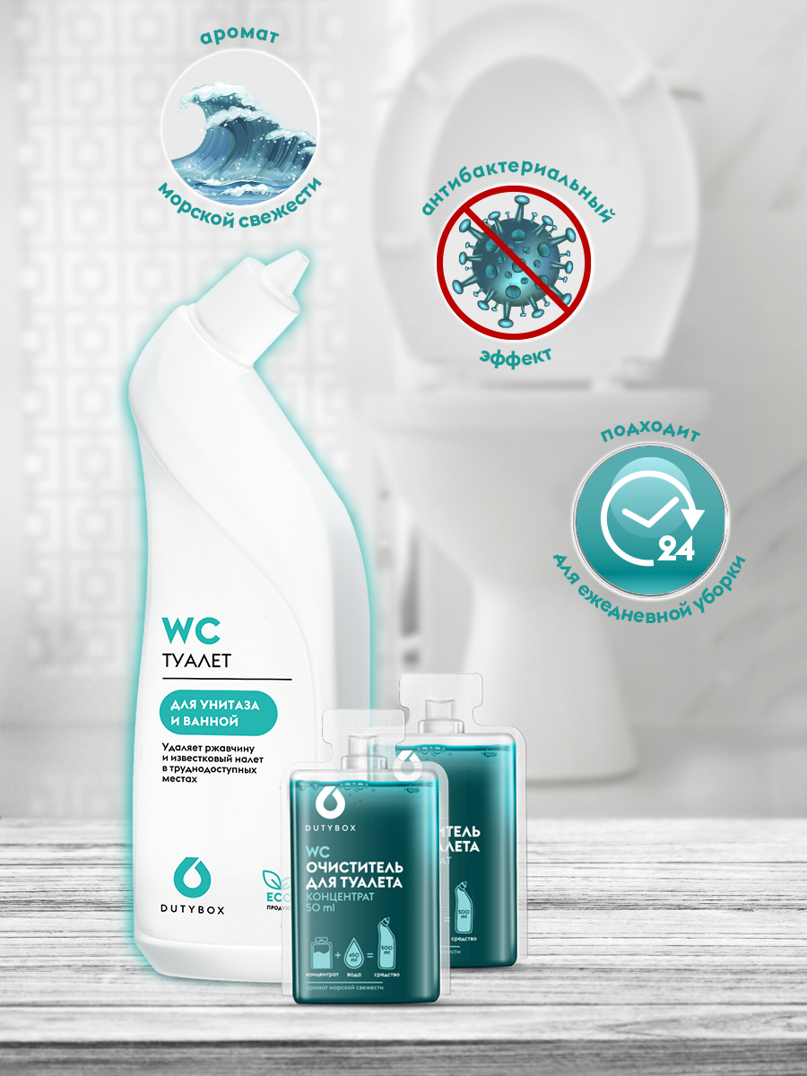 Средство для унитаза DUTYBOX 2 л, концентраты для перезаполнения, гель для чистки туалета, акриловых ванн, сантехники и душевых кабин от плесени, без хлора