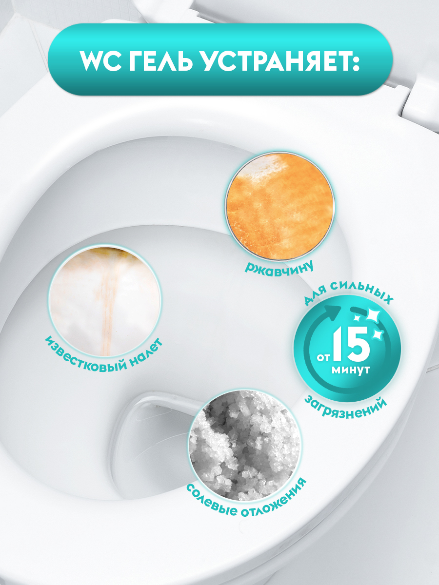 Описание: Очиститель унитаза и ванны. 4 капсулы по 50 мл. Аромат: морская свежесть. Входящие в состав средства биоразлагаемые ингредиенты и натуральные растительные кислоты бережно и эффективно очищают унитазы, фаянсовые изделия, кафель от известкового налета, потеков ржавчины, солевых отложений. Подходит для акриловых ванн, устраняет запах, убивает микробы. Небольшое количество средства, применяемое регулярно, сделает ваш туалет чистым, не нанося вреда сантехнике и канализации. Гелеобразная структура обеспечивает экономичный расход. Не держите на хромированных деталях более 20 секунд. Способ применения: отрежьте ножницами горлышко одной капсулы и смешайте ее содержимое с 450 мл холодной воды, вставьте дозатор в горлышко бутылки, накрутите крышку и перемешайте, средство должно загустеть. Готовое средство нанесите на очищаемую поверхность, оставьте на 1-2 минуты. Потрите щеткой или губкой и смойте водой. При разведении концентрата и при работе с готовым составом используйте резиновые перчатки.