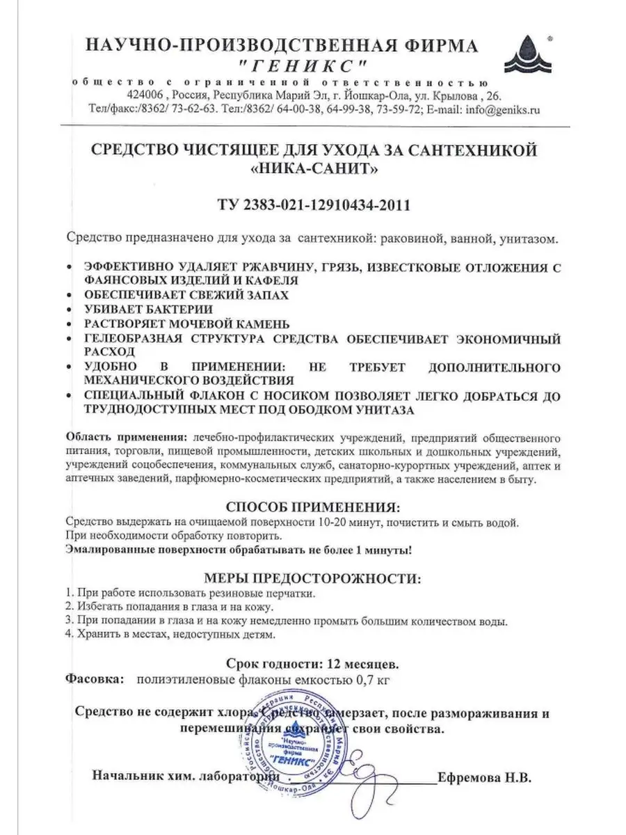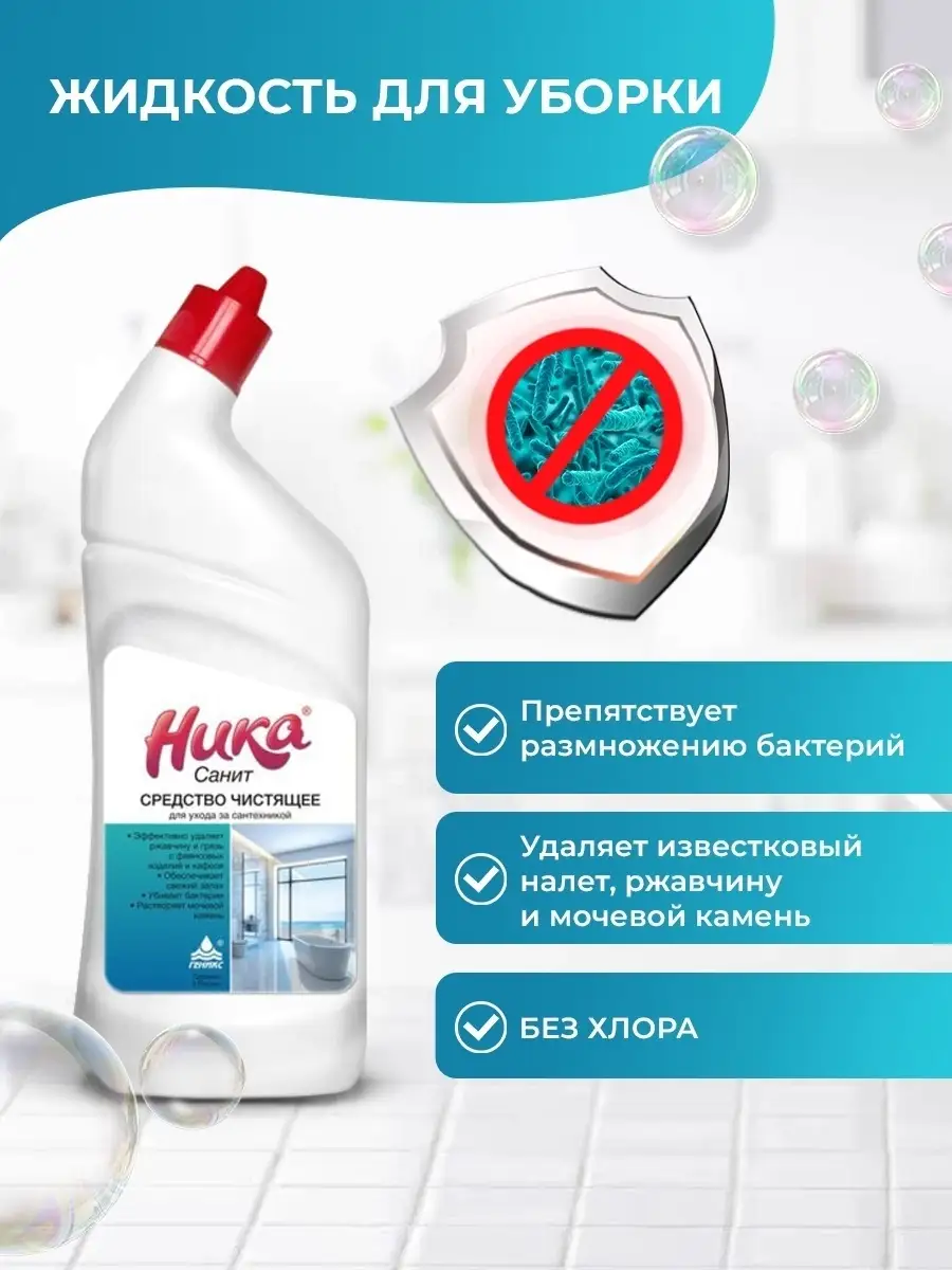 Описание: Чистящее средство для сантехникик НИКА предназначено для ухода за сантехникой: раковиной, ванной и унитазом. Средство для мытья унитаза, душевой кабины, а также для других поверхностей в ванной комнате. Подходит для кафеля, стекла и пластика. Преимущества: Эффективно удаляет загрязнения, ржавчину и известковый налет. Придает блеск. Обеспечивает свежий запах. Экономично в использовании. Полностью смывается с поверхностей. Не содержит хлор. Спреевая форма обеспечивает равномерность распределения в труднодоступных местах. Устойчивая пена хорошо удерживается и растворяет загрязнения на вертикальных поверхностях. После замерзания сохраняет все чистящие свойства. Разрешено на предприятиях общественного питания, пищевой промышленности и в детских школьных и дошкольных учреждениях. Может использоваться на объектах сферы обслуживания и в быту населением. Наш гель для мытья ванны и душа обладает мощным действием против известкового налета и других загрязнений, обеспечивая безупречную чистоту и белизну. Наша хозяйственная химия эффективно очищает акриловые поверхности, керамическую плитку, мрамор, каменную поверхность и эмалированную сантехнику, не оставляя запаха и ржавчины. Наш концентрат для очистки санитарной техники и унитаза обладает антибактериальным действием, что обеспечивает максимальную гигиеничность и обеззараживание. Эко-формула нашей химии делает ее безопасной для животных и детей, а также не наносит вреда окружающей среде. Средство для унитаза и ванной, раковины. Для чистки сантехники: душевых кабин, акриловых ванн и раковин. Подходит для хромированных деталей кранов и смесителей и зеркал. Поверхностей из стекла, нержавеющей стали, кафеля и акрила загрязнений на предприятиях общественного питания (рестораны, кафе, столовые, кейтеринговые компании), торговли, объектах ветеринарного надзора, коммунального хозяйства и других сфер обслуживания населения, в медицинских учреждениях различного профиля, в детских школьных и дошкольных учреждениях, в детских оздоровительных лагерях, санаторно-курортных учреждениях, учреждениях соцобеспечения , населением в быту, а также в любых организациях, где необходимо очищать поверхности от загрязнений. Придаёт блеск акриловым поверхностям. Можно использовать как чистящие средства в качестве спрея для уборки за техникой, жидкости для уборки кухни, ванной. Очищает поверхность от мыльного налета, жировых загрязнений, известковых отложений. Так же можно использовать как концентрат для ершика, ерша. Содержит биоразлагаемые компененты. Полностью смывается водой. Обладает антибактериальным эффектом. Чистящее средство предотвращает появление известкового налета.Добавляйте наш бренд в избранное и получайте уведомления о хороших распродажах и скидках