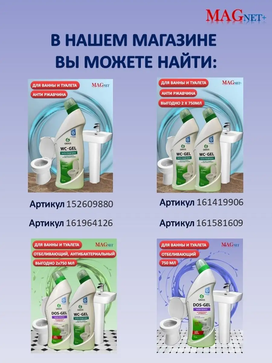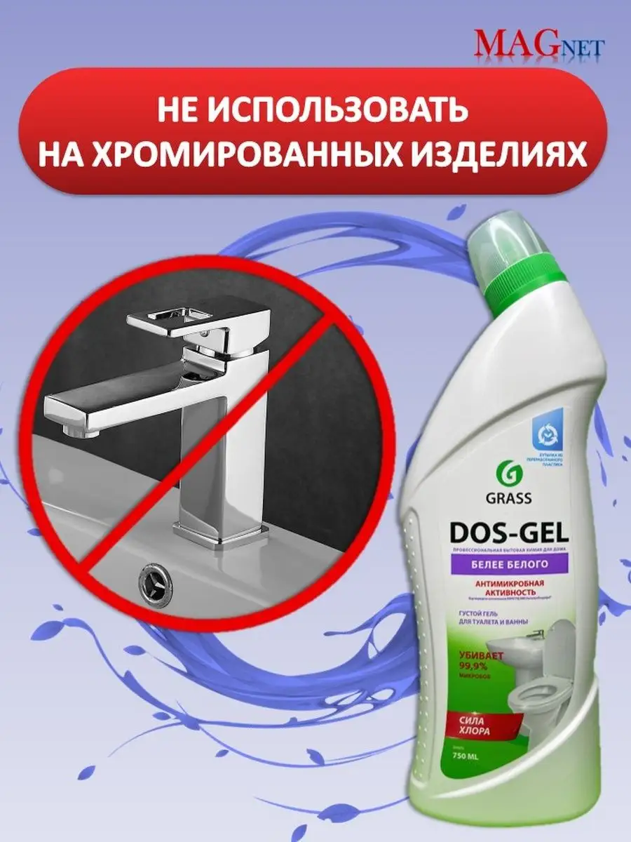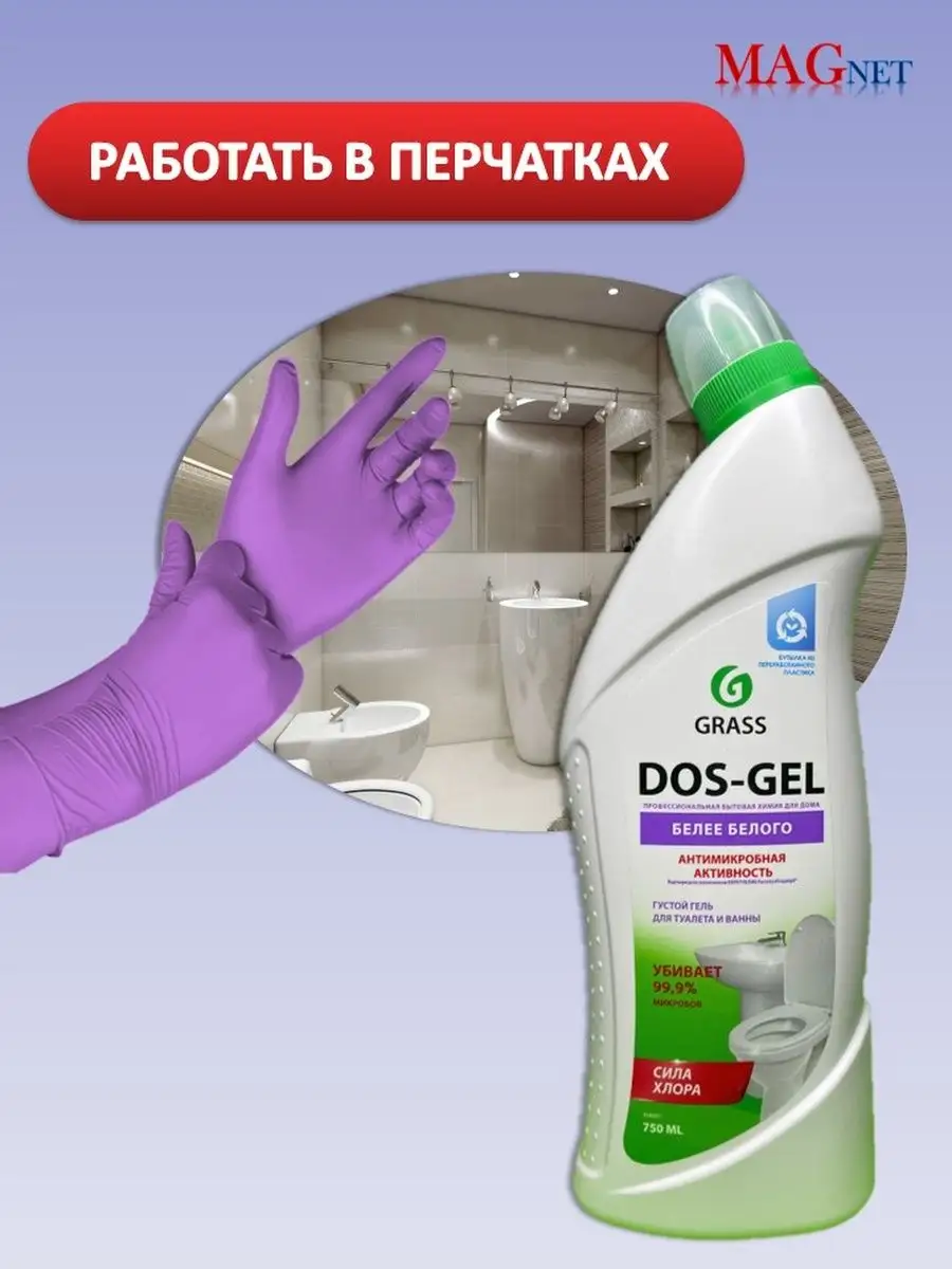 Описание: Гель для чистки унитаза Dos gel против налета Grass Грасс - это профессиональная бытовая химия для ванной, кухни, туалета, фаянсовых изделий. Чистящее средство для ванной и туалета - универсальное средство для уборки, подходящее для ежедневной уборки всех видов поверхностей в ванных комнатах и санузлах (гель для уборки, очиститель для унитаза). Моющее средство ДОС гель идеально подходит для чистки фаянсовых изделий на кухне и ванной комнаты, туалетов, акриловых ванн, раковин, кафеля, стоков, сливов, пола и рабочих поверхностей. Обладает дезинфицирующими свойствами, удаляет плесень и грибок. Пары защищают от микробов. Подходит для профилактики засоров и устранения неприятных запахов из сточных труб. Густая формула позволяет средству дольше оставаться на стенках, продолжая работать и обеспечивает его экономичный расход. Бытовая химия от Грасс - это эффективные средства для уборки вашего дома. Способ применения: для унитаза: нанести под ободок и оставить на несколько минут, потереть ершиком, смыть водой. Для ванной и раковины: нанести на поверхность, потереть щеткой или губкой, оставить на несколько минут, смыть водой. Для мытья пола и рабочих поверхностей: разбавить из расчета 60 мл на 5 л воды. Отбеливание белья, белизна: развести из расчета 15 мл на 5 л теплой воды, замочить белье в растворе и оставить на 45 минут, после чего тщательно прополоскать. Для унитаза средство удаляет налет, чистит и дезинфицирует под ободком унитаза. Чистящие средства для унитаза способствуют устранению неприятного запаха из туалета, убивает 99 % микробов. Средство для унитазов для раковины придает поверхности чистоту и блеск, сохраняя белоснежный эффект и антиналет на несколько дней. Dos-gel Grass для унитаза является незаменимым дезинфицирующим и антибактериальным средством для удобной и быстрой уборки дома.