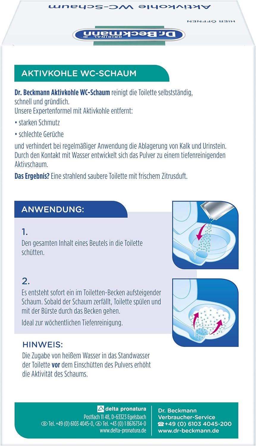 Описание: Средство для унитаза Dr. Beckmann с активированным углём в упаковке 3х100 г представляет собой высокоэффективное чистящее средство в виде пены, которое обеспечивает гигиеническую чистоту и свежесть в туалете.