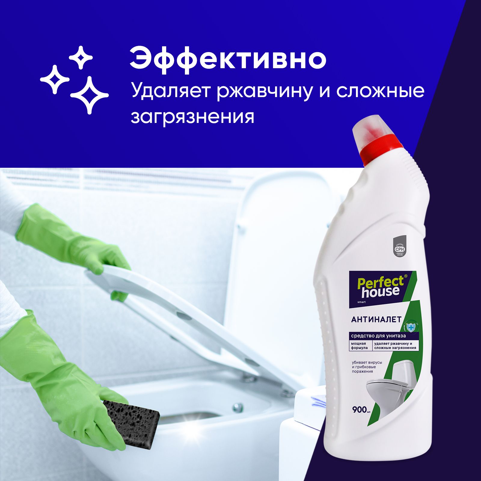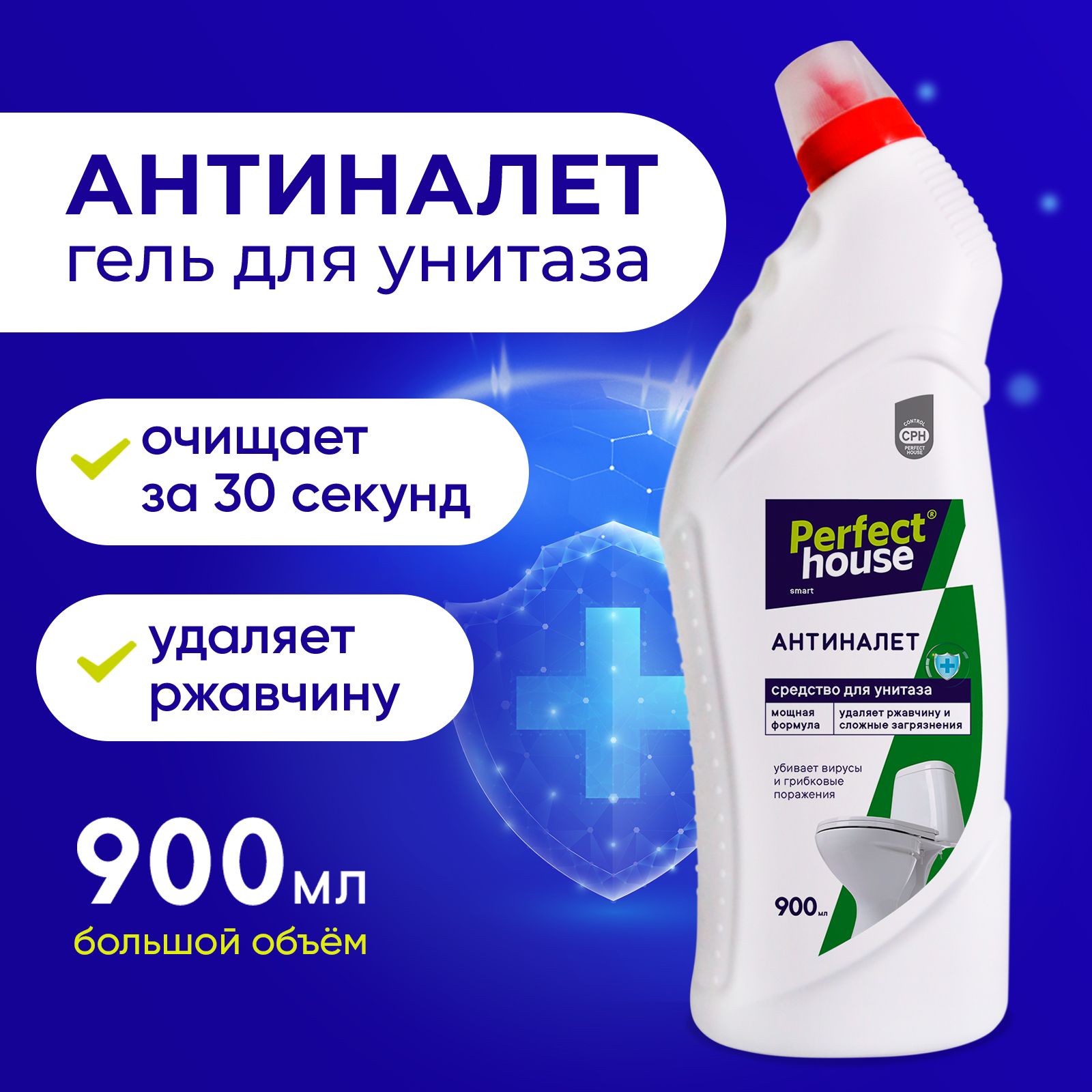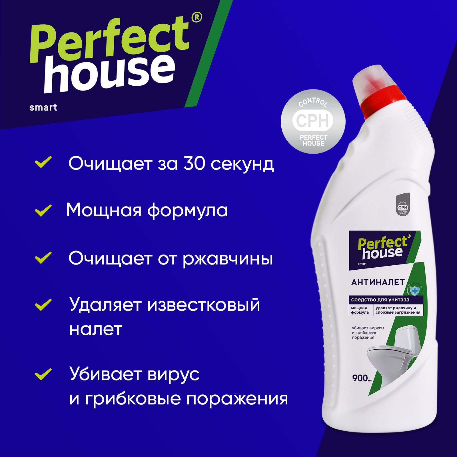 Средство для унитаза Perfect House Антиналет, чистящий гель от ржавчины и известкового налета, 900 мл