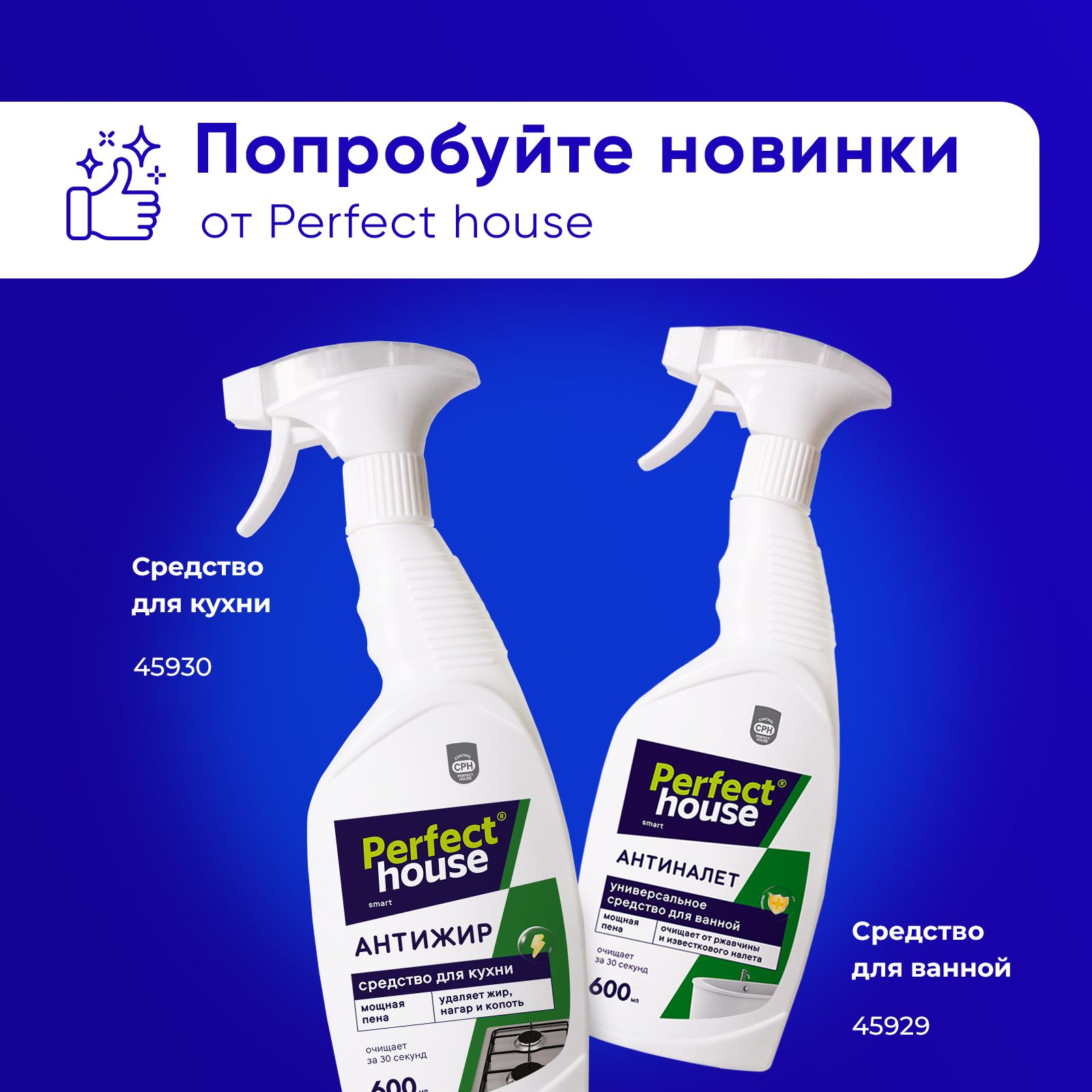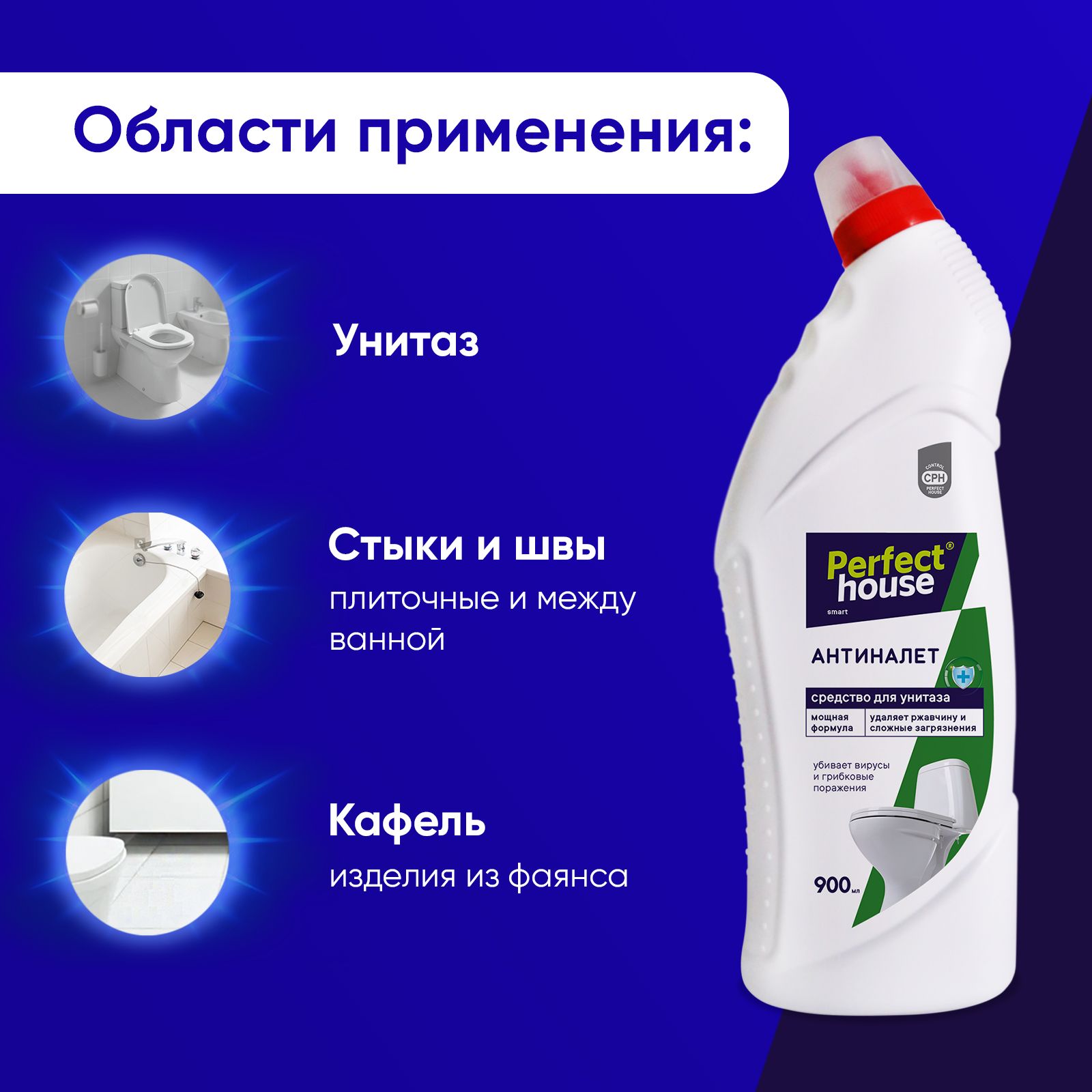 Чистящее средство для унитаза от Pefect House поможет сократить время уборки, а также продлит срок службы обрабатываемых покрытий за счет мощной формулы.АНТИНАЛЕТ ДЛЯ ВАННОЙ универсальный спрей от налета, ржавчины и плесениПЕРЧАТКИ ЛАТЕКСНЫЕпрочные перчатки с хлопковым напылением. аромат алоэ и зеленого чая СУПЕР АНТИЖИРчистящее средство для уборки, спрей жироудалитель