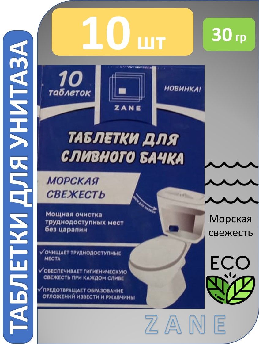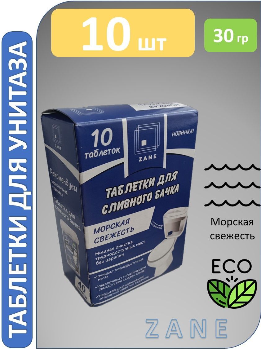 Средство для унитаза ZANE таблетки для туалета и смывного бачка 10шт х 20гр, блок, чистящее средство, освежитель в туалет, универсальная защита, против налета, бытовая химия