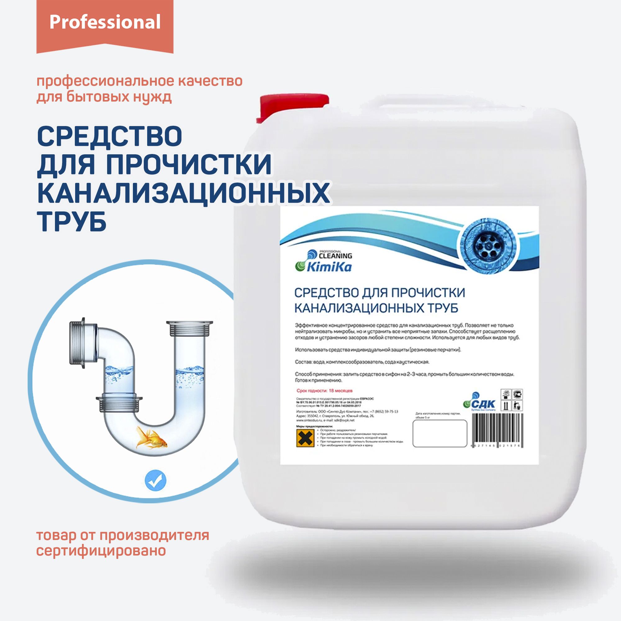 Средство для устранения засоров и прочистки канализационных труб KimiKa, 5 литров