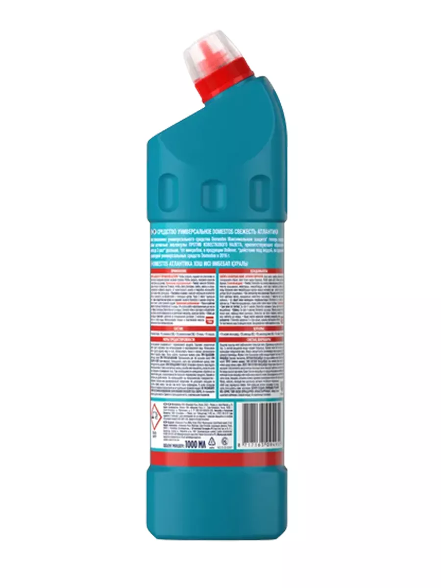Описание: Универсальное чистящее средство Domestos Свежесть Атлантики, 1000 мл Характеристики продукта: • Благодаря особой формуле с дезинфицирующим эффектом и чистящими компонентами, Domestos убивает все известные микробы, максимально очищает грязь и устраняет неприятные запахи. • Уникальная формула геля Domestos предотвращает появление известкового налета. • Густая текстура геля Domestos обеспечивает гарантированное очищение и убивает бактерии, грибки, вирусы и споры. • Изогнутый дозатор обеспечит удобство использования. • Регулярно используйте Domestos для постоянной чистоты и белизны вашего туалета и других поверхностей. Состав: менее 5% гипохлорит натрия, анионные ПАВ, амфотерные ПАВ, мыло, отдушка. Хранить: в плотно закрытой упаковке, вдали от прямая солнечных лучей. Срок годности см. на упаковке.