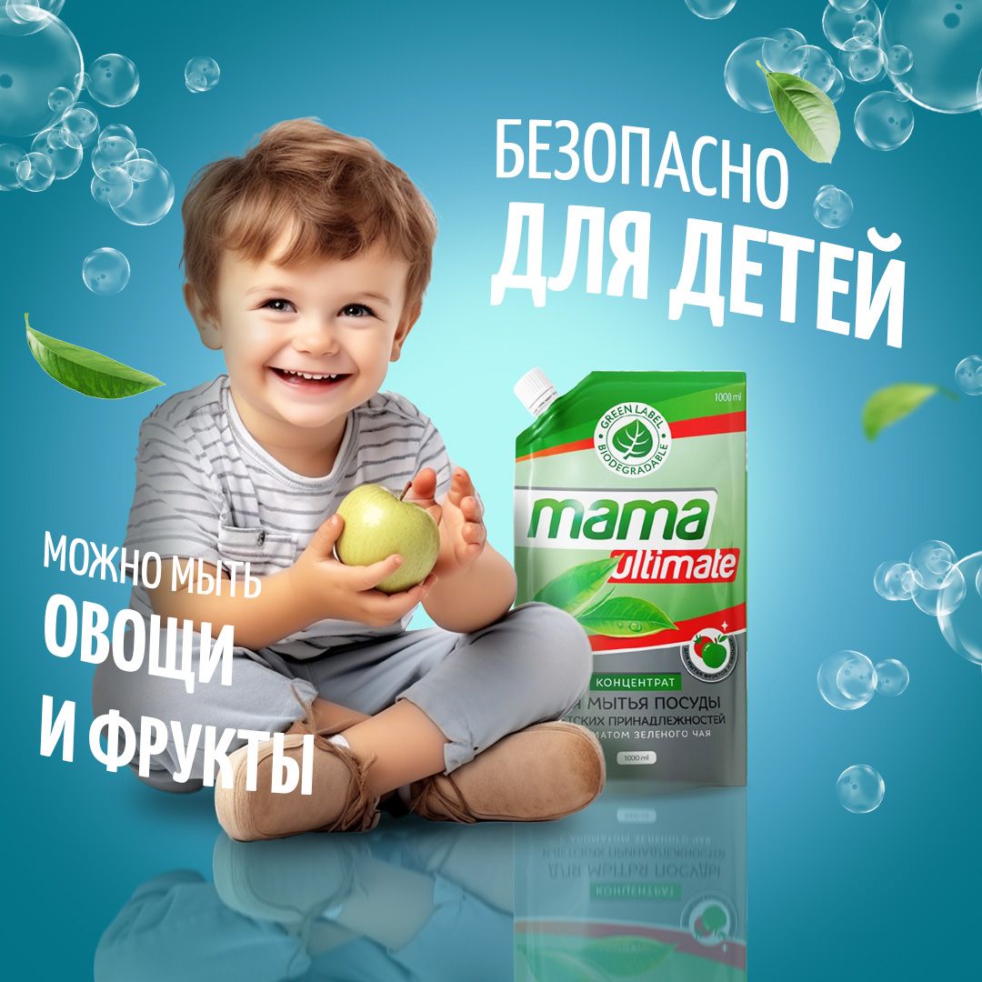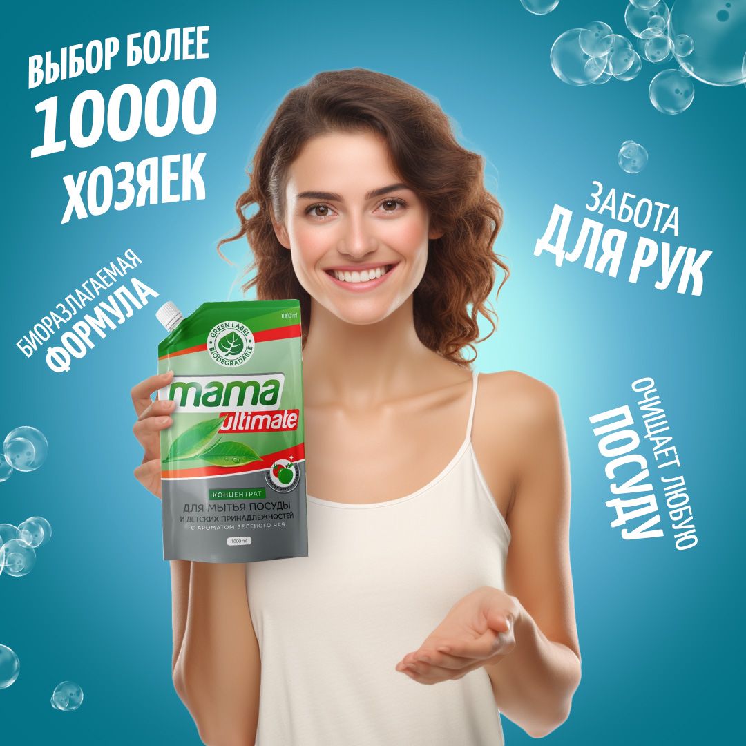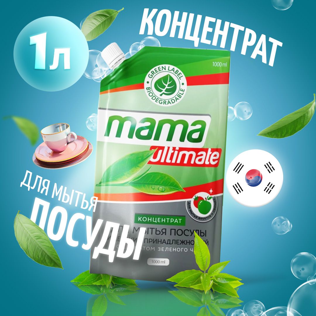 Средство гель для мытья посуды концентрат Mama Ultimate зеленый чай 1 л.