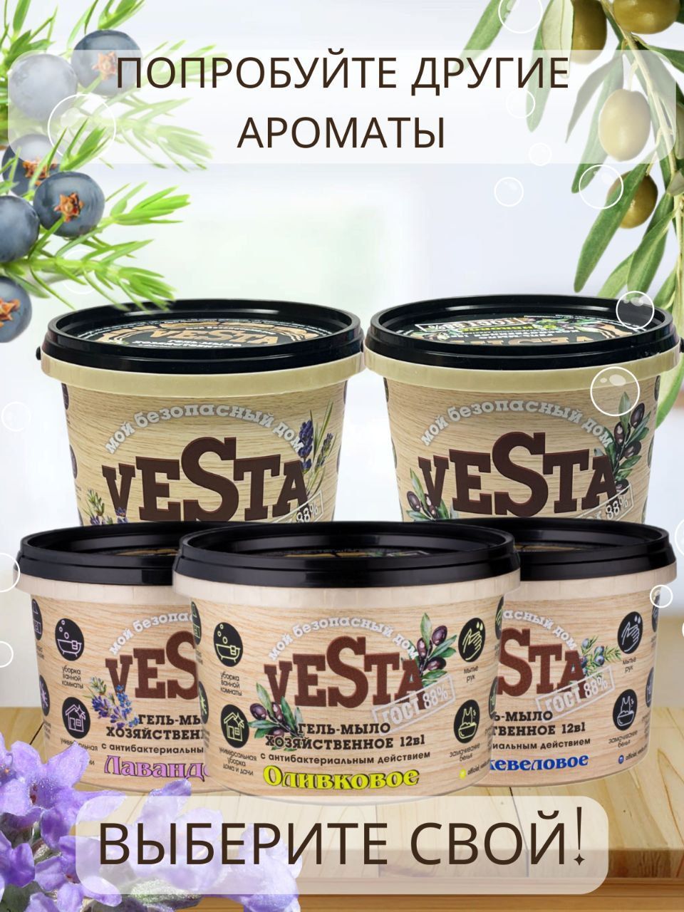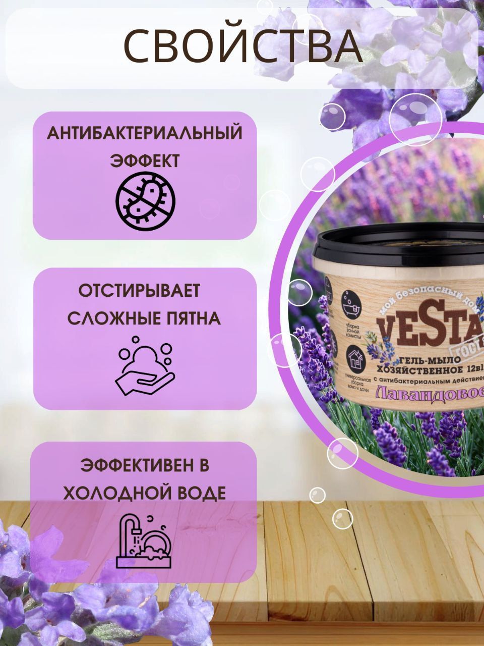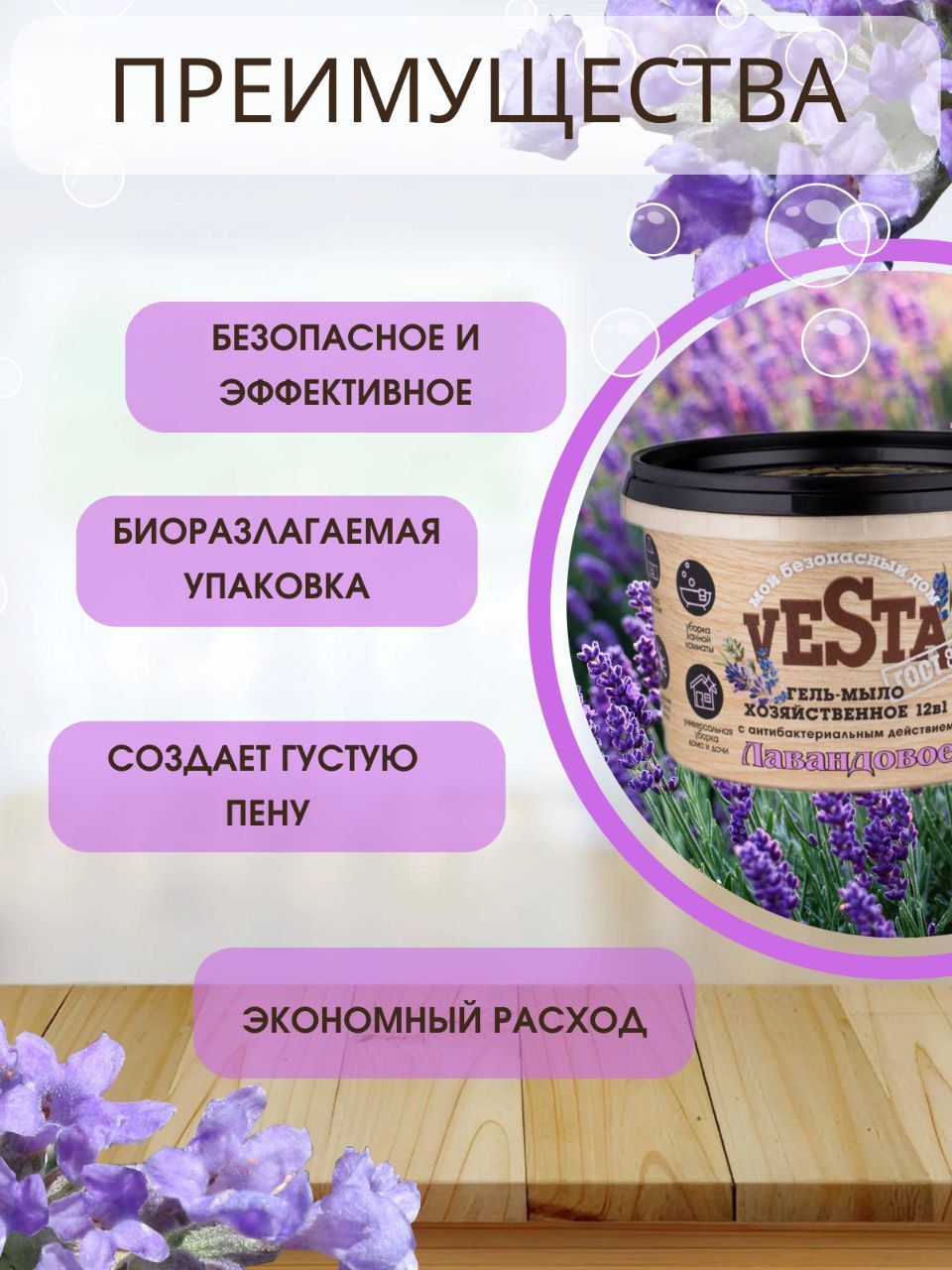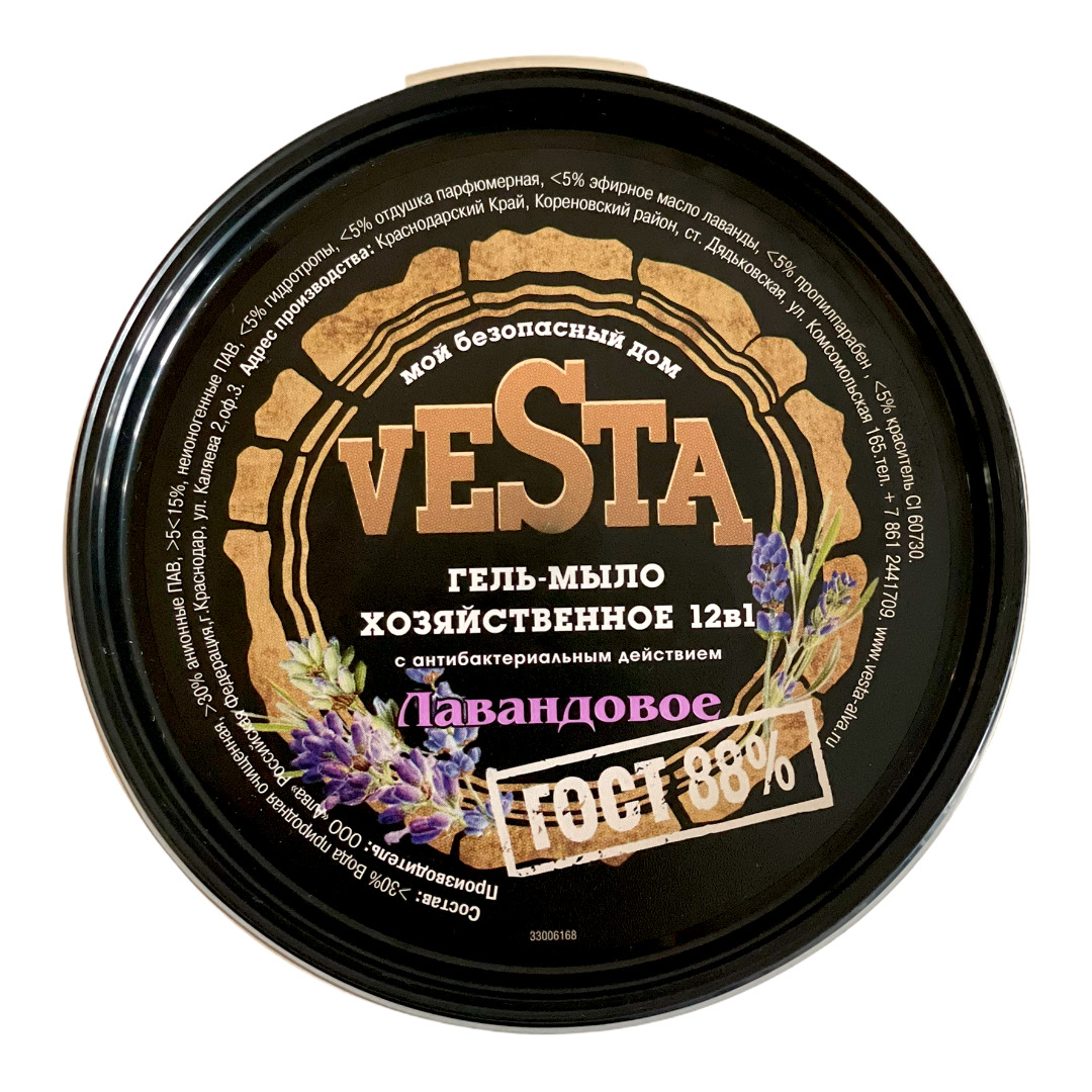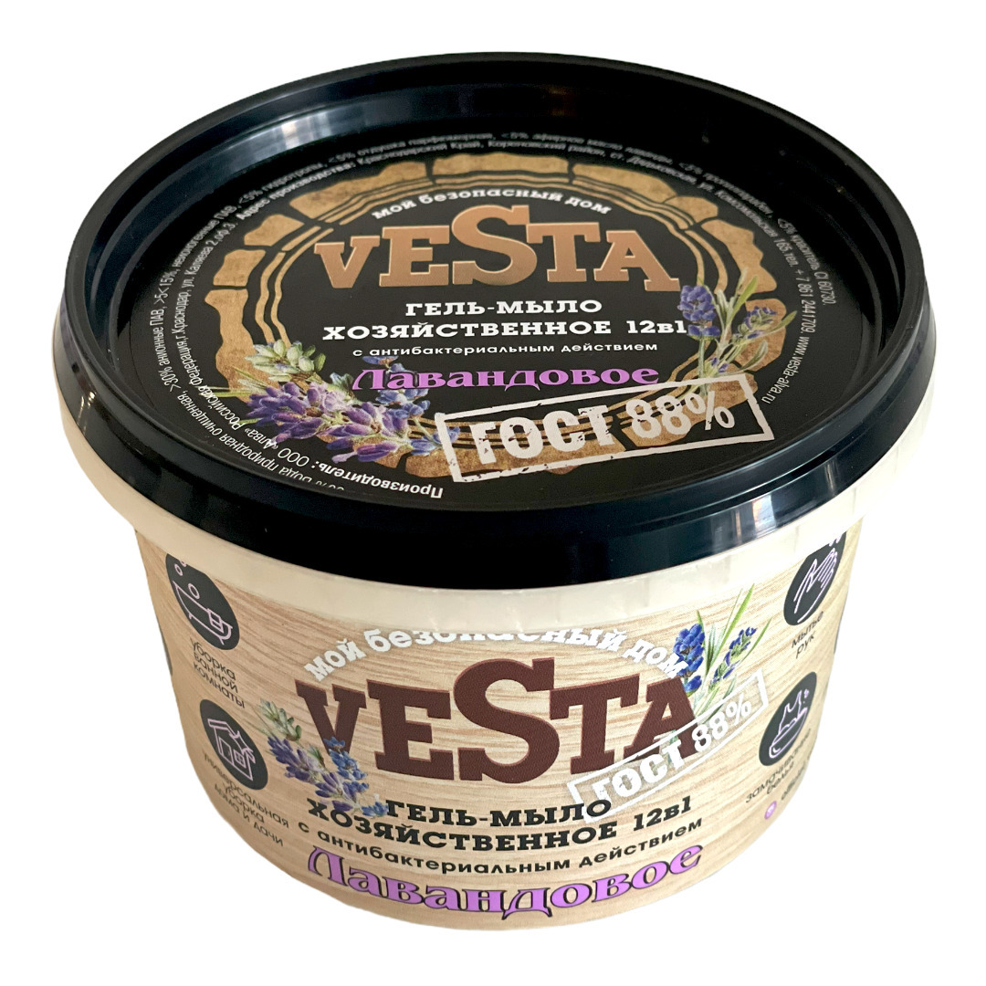 Средство моющее универсальное Гель-мыло хозяйственное VESTA Лавандовое ГОСТ 88%, 500 г