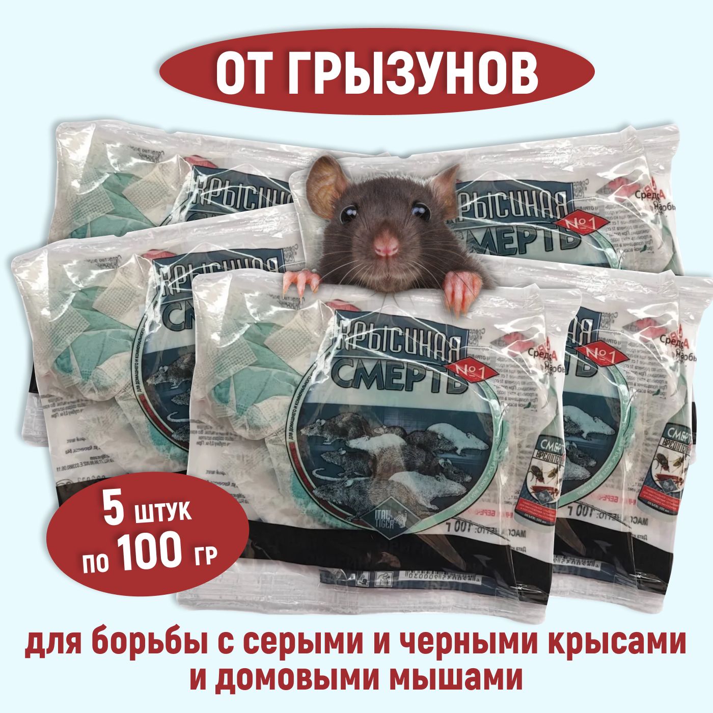 Средство от грызунов "Крысиная смерть" 5 шт по 100 г