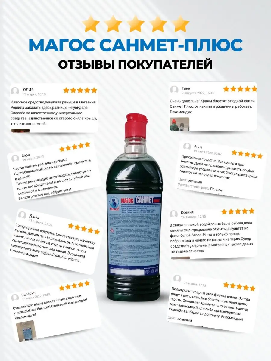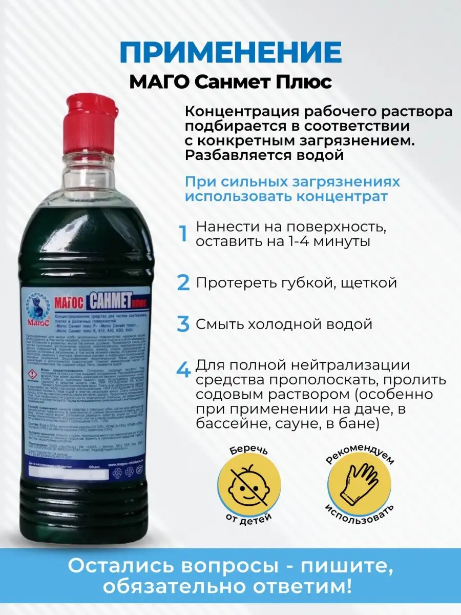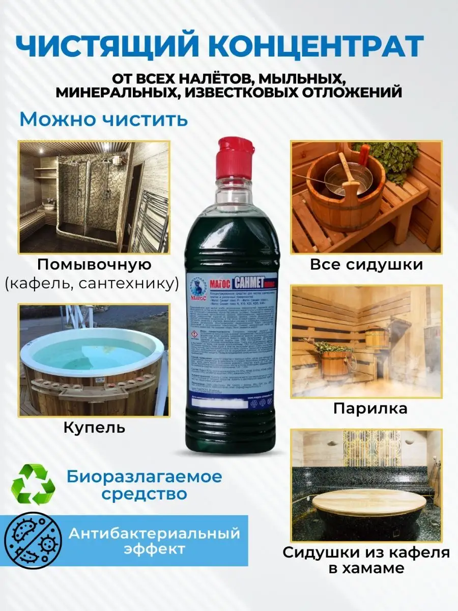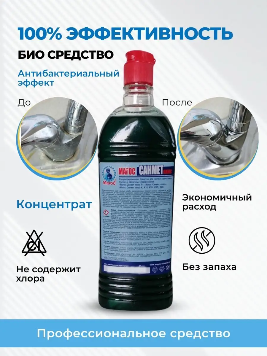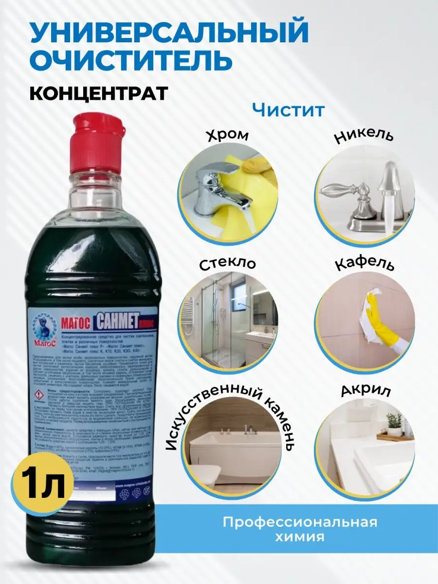 Описание: Предлагаем вам попробовать профессиональное универсальное чистящее средство Магос Санмет Плюс. Эко гель концентрат для дома поможет справиться с потеками ржавчины на унитазе, удалит известковый налет на акриловых ваннах и в туалете. Концентрированное моющее средство без запаха прекрасно очищает раковины из искусственного камня и хромированные изделия в ванной комнате и душевой кабине. Он придаст блеск и сияние поверхности, уничтожит вредные микробы и неприятные запахи. Кроме того, он без следа устранит мыльный осадок, жир и глубоко въевшуюся грязь. В разведенном виде очистит мрамор. Наше средство идеально подходит для чистки полотенцесушителей и всех других сантехнических приборов. Вы можете использовать его для чистки изделий из хрома и меди, не повреждая поверхность. Концентрат справляется с мытьем латунных люстр и подсвечников. Широкий диапазон разведения позволяет удалять как свежие, так и очень застаревшие образования. Одним из главных преимуществ нашего средства является его универсальность. Очистит акриловые, керамические, кафельные, пластиковые и металлические поверхности. Это Биоразлагаемое средство. Концентрат не содержит агрессивных химических веществ, которые могут нанести вред вашему здоровью или окружающей среде. Благодаря своей профессиональной формуле, чистящее средство обеспечивает максимальную гигиену и чистоту в вашем доме. Оно эффективно уничтожает бактерии, грибки и другие микроорганизмы, предотвращая их размножение и распространение.