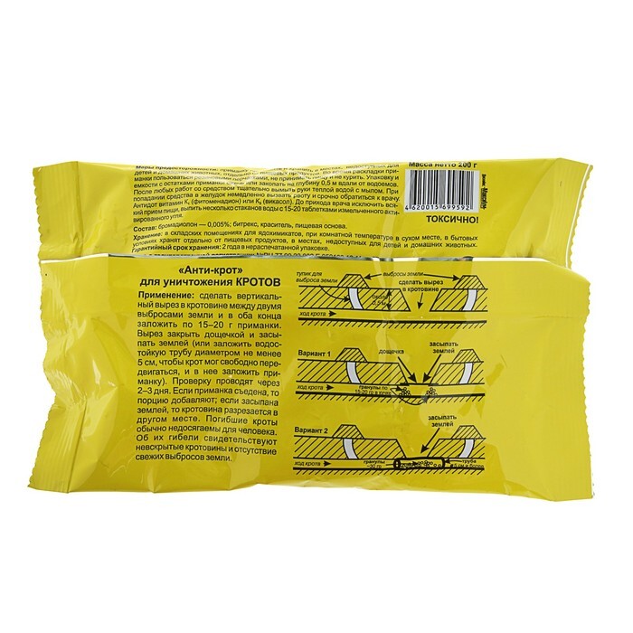 Описание: Для тех, кто твердо намерен избавится от кротов на своем участке, разработан уникальный препарат — специальные гранулы . Состав этой приманки подобран с учетом пищевых предпочтений крота, запах и вкус очень привлекательны для него. Специальная технология изготовления и включение в состав сильного действующего вещества гарантируют высокую эффективность в борьбе с кротом.
