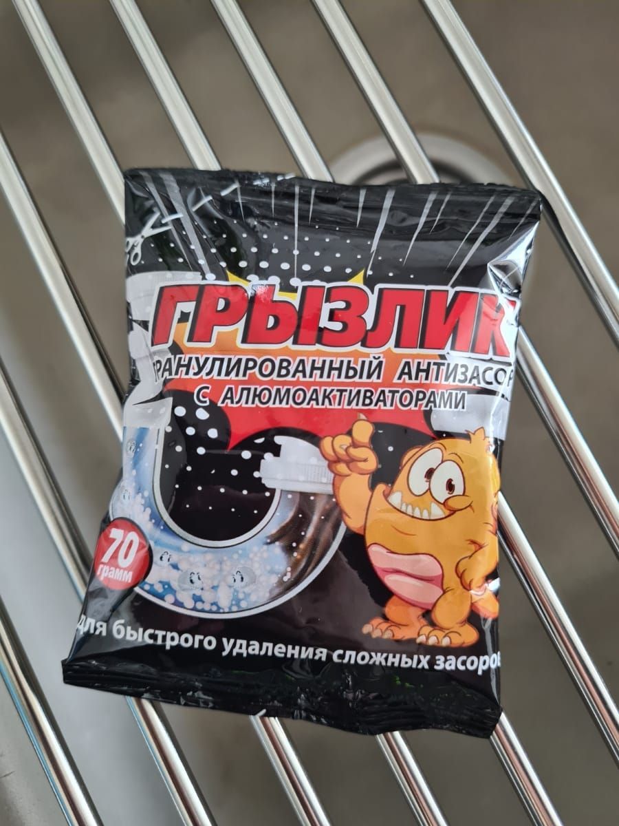 Описание: Средство для прочистки труб от засоров. Засор труб – неприятная проблема, с которой рано или поздно сталкиваются все. Вантузы и инструменты для прочистки не всегда помогают от засора в раковине и ванной, а устранять их обычно нужно срочно. Средство от засоров труб ГРЫЗЛИК станет для вас отличным помощником в борьбе с этой проблемой. Универсальное средство для очистки труб антизасор идеален для удаления засоров в ванной комнате, туалете и на кухне. Активные гранулы от засоров подходят для устранения и профилактики засоров пластиковых, металлических и пвх канализационных труб, гофр и сифона. Крот для труб можно использовать для канализации сантехники, ванн, душевых кабин (душа), унитазов раковин и посудомоечных машин. Средство для чистки труб эффективно растворяет волосы или остатки пищи, жиры, белки, соли жирных кислот. Чистящее средство для кухни уничтожает микробы и устраняет неприятный запах канализации. Гранулы порошок от засоров труб также эффективен как трос для прочистки канализационных труб. Эффективный состав волосогона способен растопить жир и удалить жировую пробку всего за 15 минут, не выделяя при этом вредного для здоровья хлора. Антизасор в гранулах продается набором 5 шт, 10 шт.