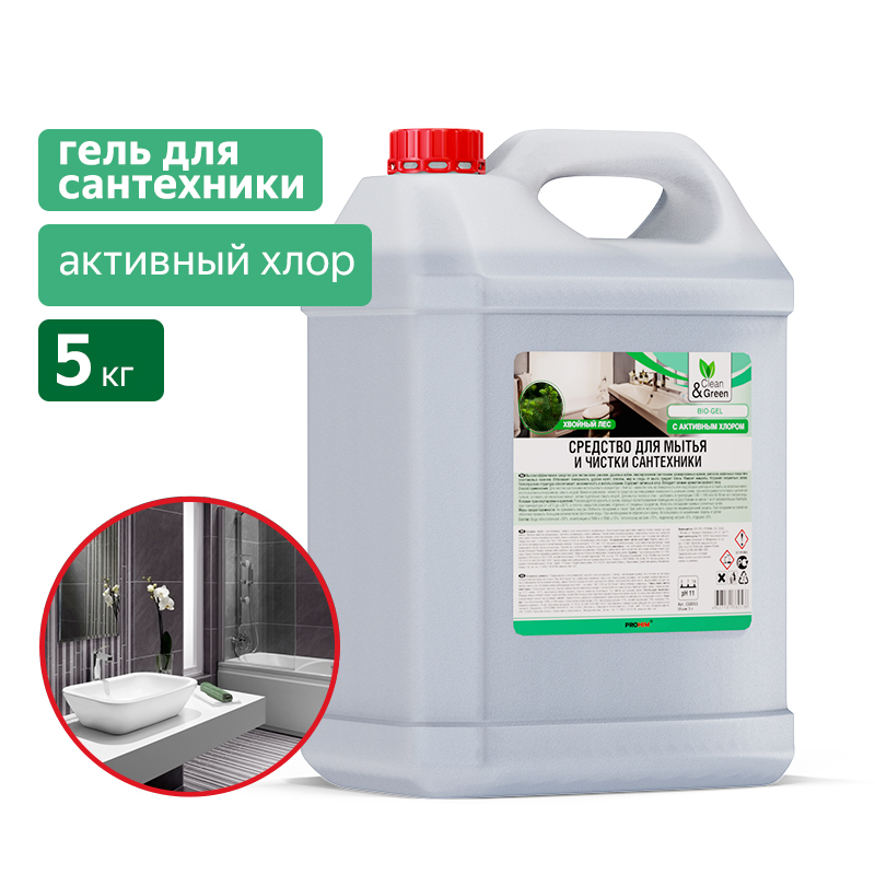 Средство с активным хлором "Bio-Gel" Clean&Green для мытья и чистки сантехники, 5 литров, CG8053