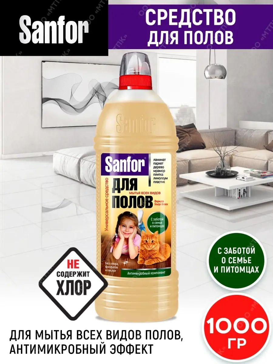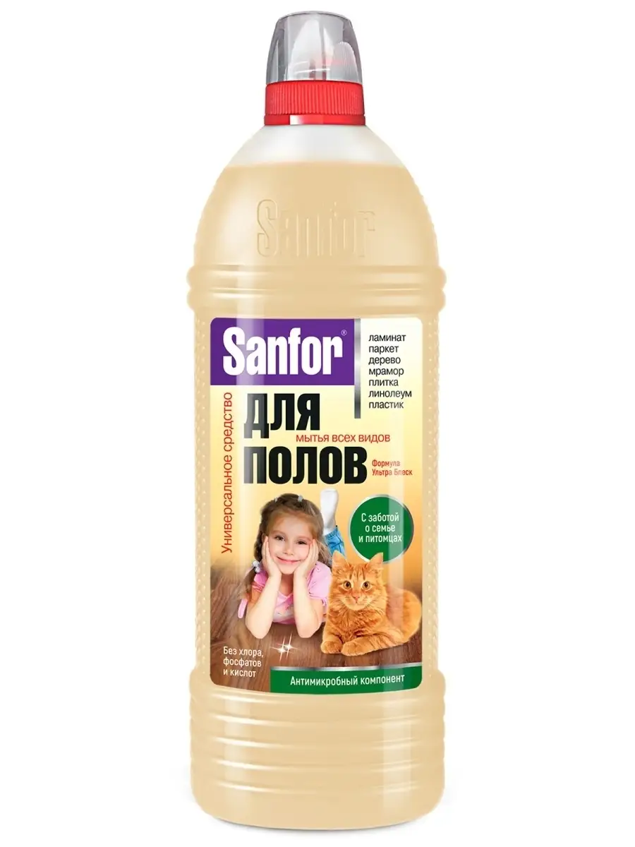 Описание: Подходит для ухода за любыми полами по всему дому: ламинат, линолеум, паркет, дерево, керамическая плитка, мрамор, пластик, окрашенные поверхности. Эффективно очищает, не оставляет разводов, не требует смывания водой. Средство содержит высокоэффективную антимикробную добавку. Tinosan HP 100 с пролонгированным действием. Обладает антистатическим эффектом. Не содержит хлор. Придает поверхности сияющий блеск чистоты. Для этого Вам понадобится швабра для мытья полов а так же ведро для мытья полов. Для пола моющее средство. Средство для пола. Жидкость для уборки средство для мытья пола / для пола моющее средство / Для пола и любых гладких. Моющая жидкость для домов с питомцами. Жидкость для уборки для пола / для уборки / для чистки всех домашних поверхностей.