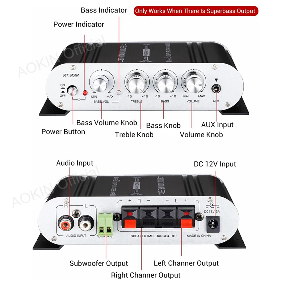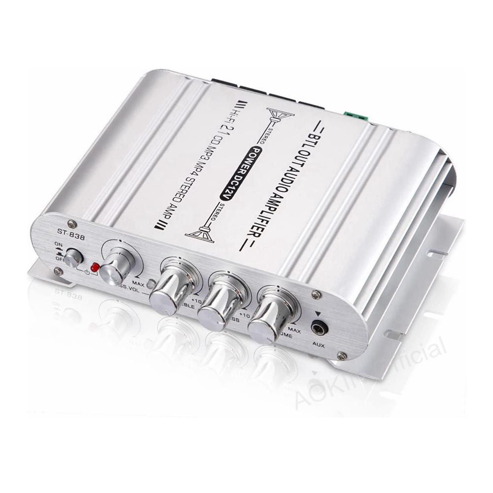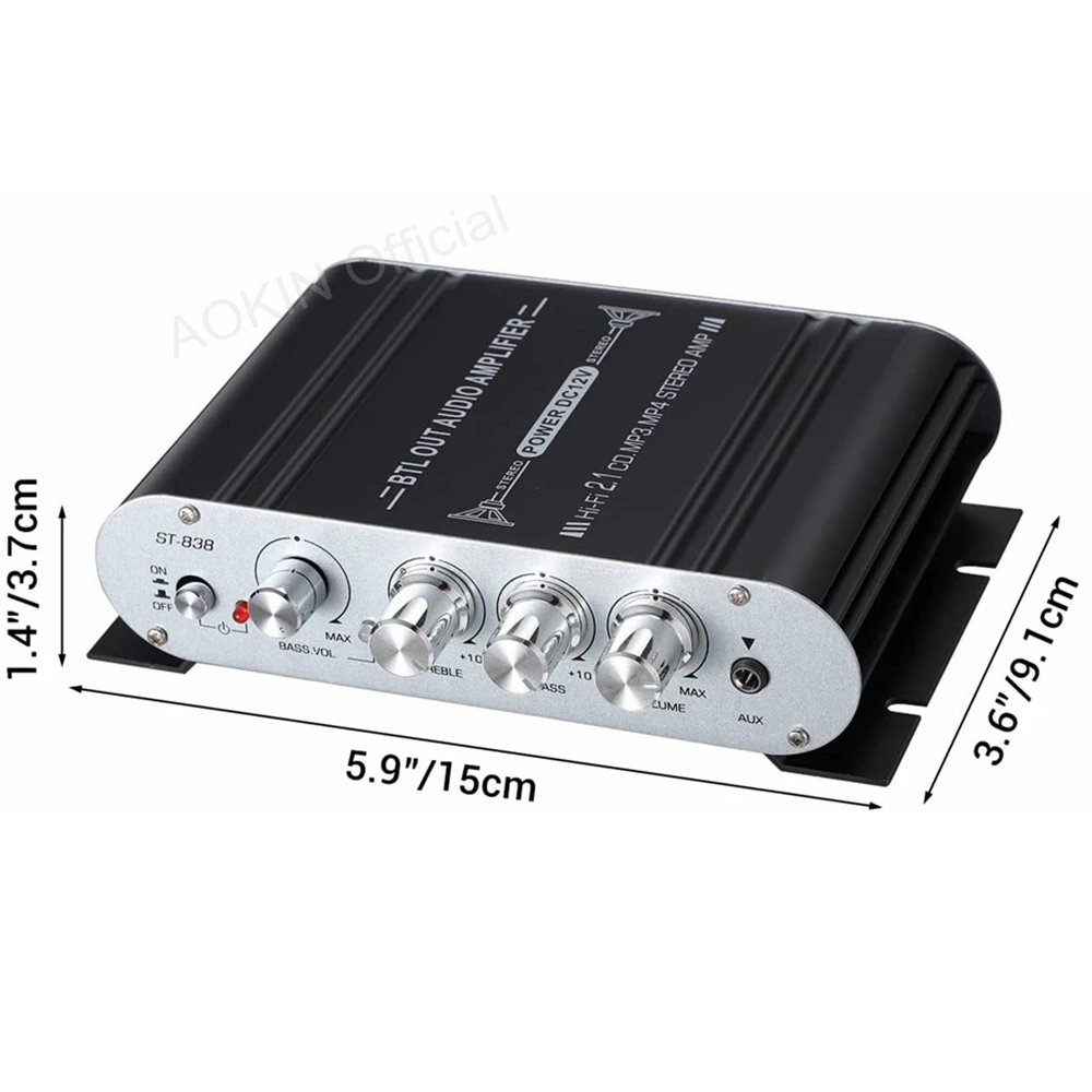 ST-838 2.1CH усилитель сабвуфера, аудио стерео усилитель басов, среднеквадратичный 20 Вт x2 + 40 Вт, цифровой усилитель мощности класса D, мини-усилитель басов