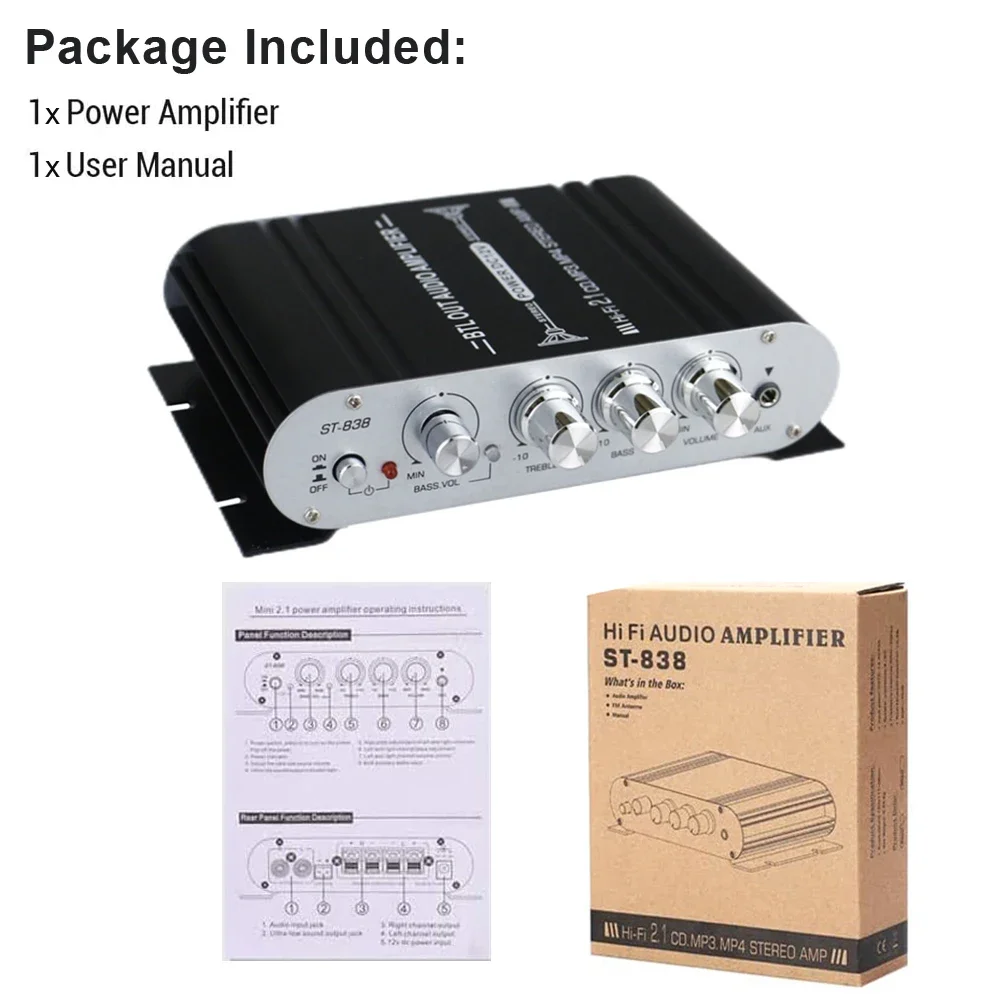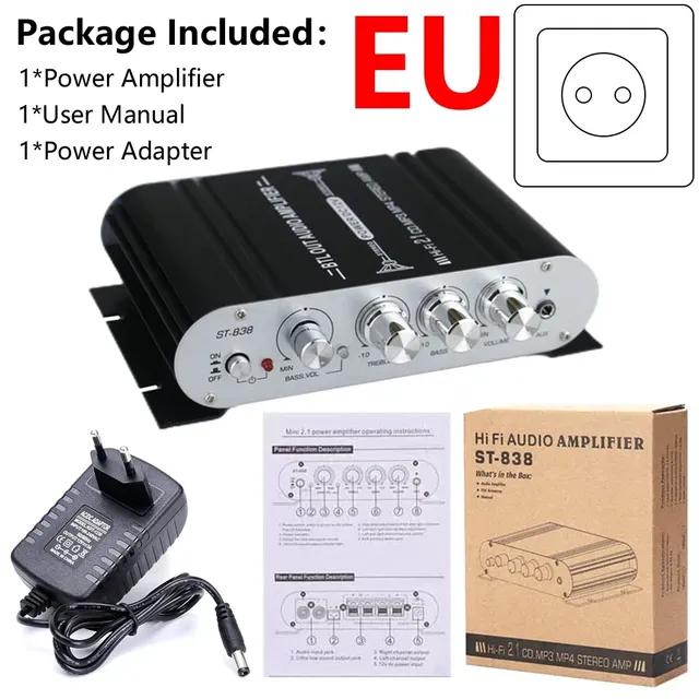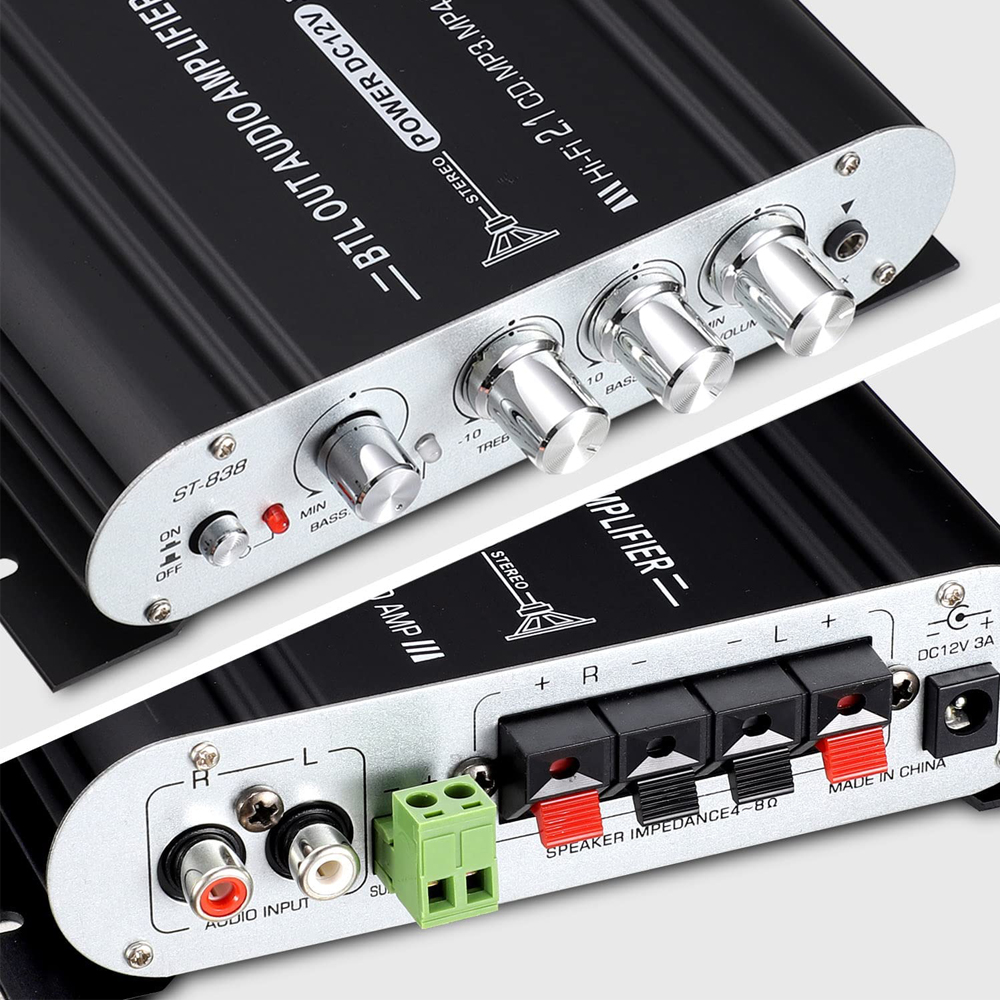 ST-838 HiFi 2,1 канальный усилитель мощности стерео Бас Звук Amp RMS 20Wx2 + 40 Вт Класс D Мини медиаплеер MP3 автомобиль черный домашний усилитель