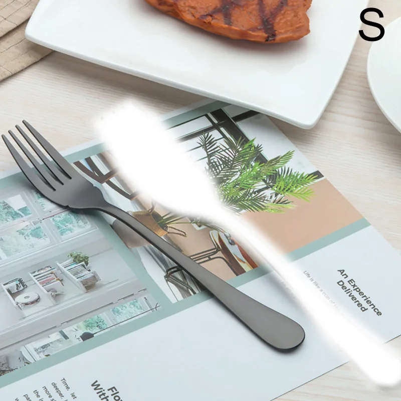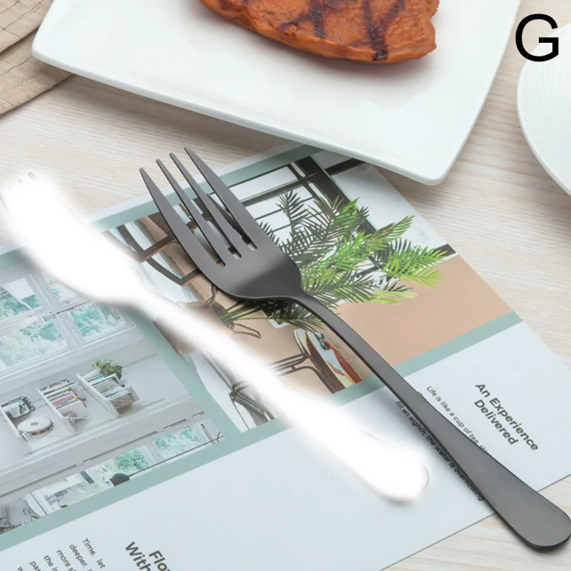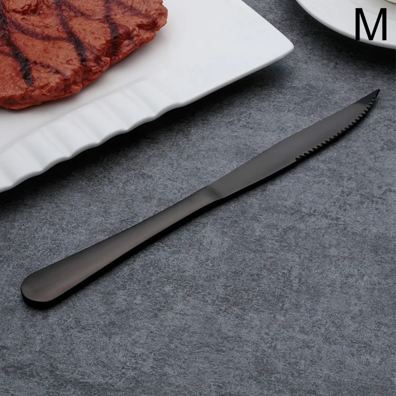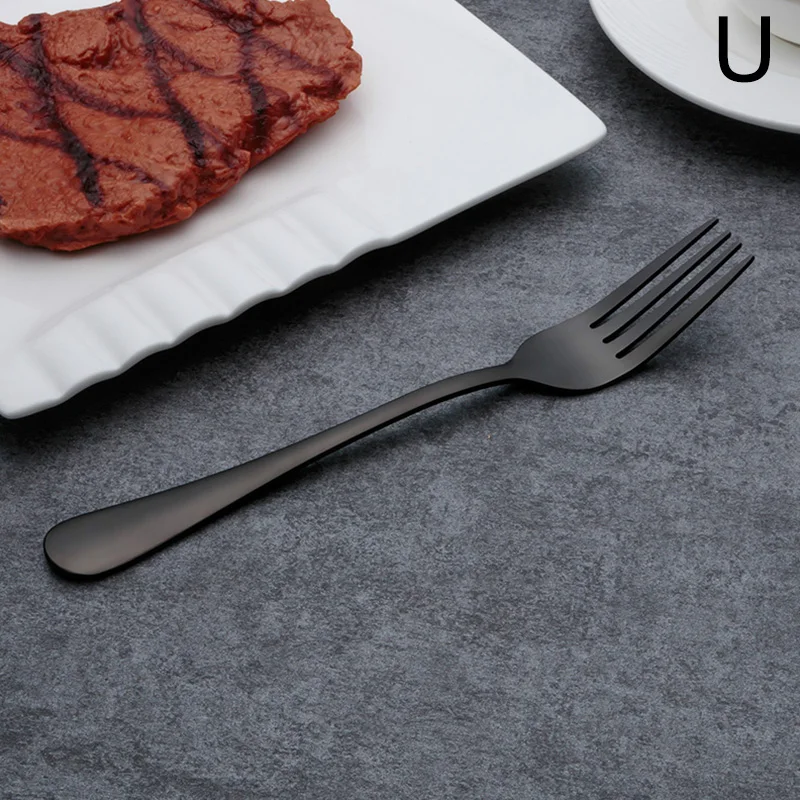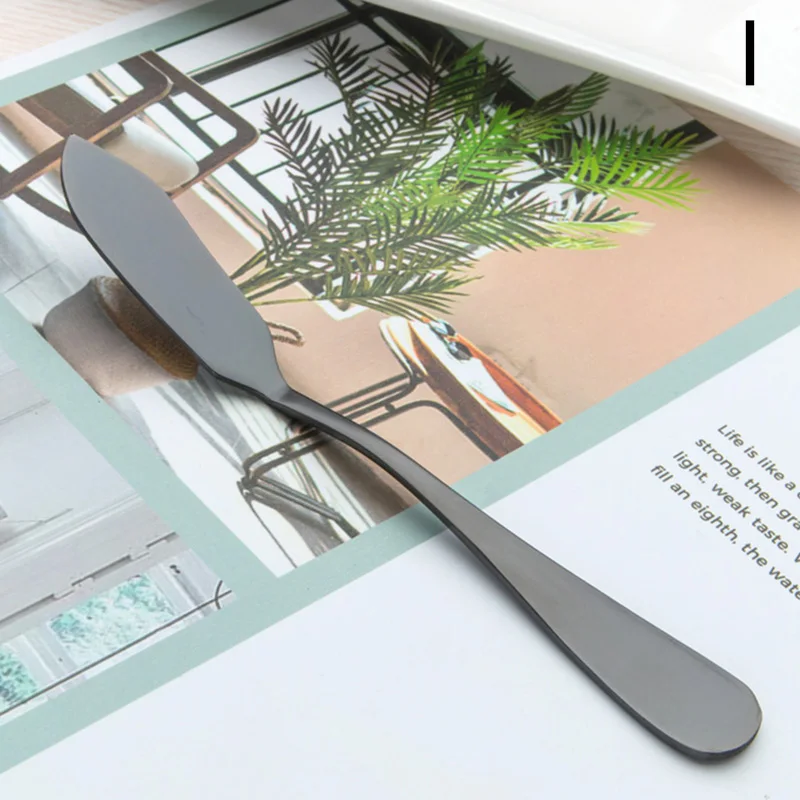 Стальной черный набор столовых приборов, вилки для рыбы, ножи, суповые ложки, палочки для масла, десертная ложка, вилка для торта, чайная ложка, набор столовой посуды