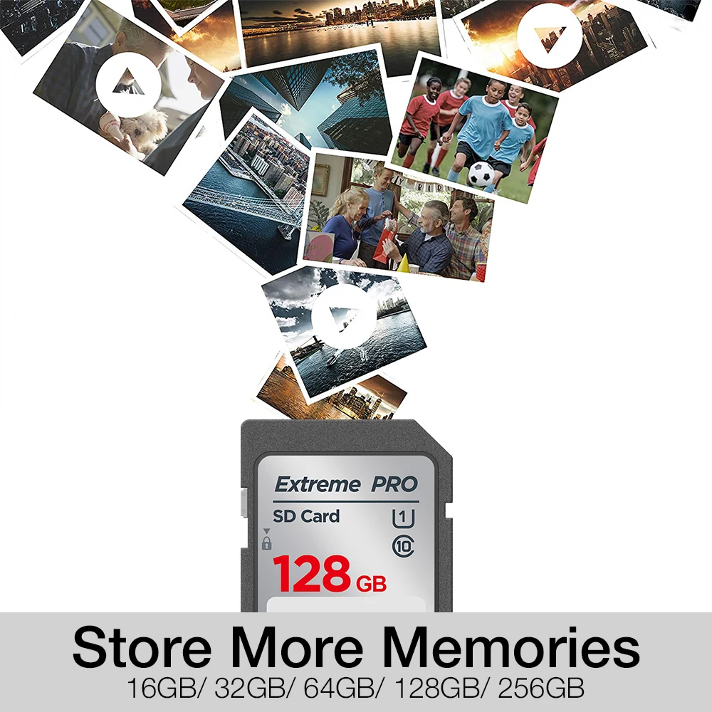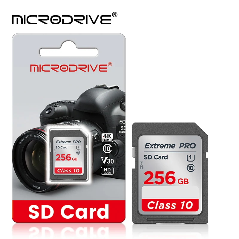 Стандартная SD-карта Extreme PRO, 16 ГБ, 32 ГБ, 64 ГБ, 128 ГБ, 256 ГБ, SDHC/XC C10 U3, SD-карта памяти нормального размера для камеры