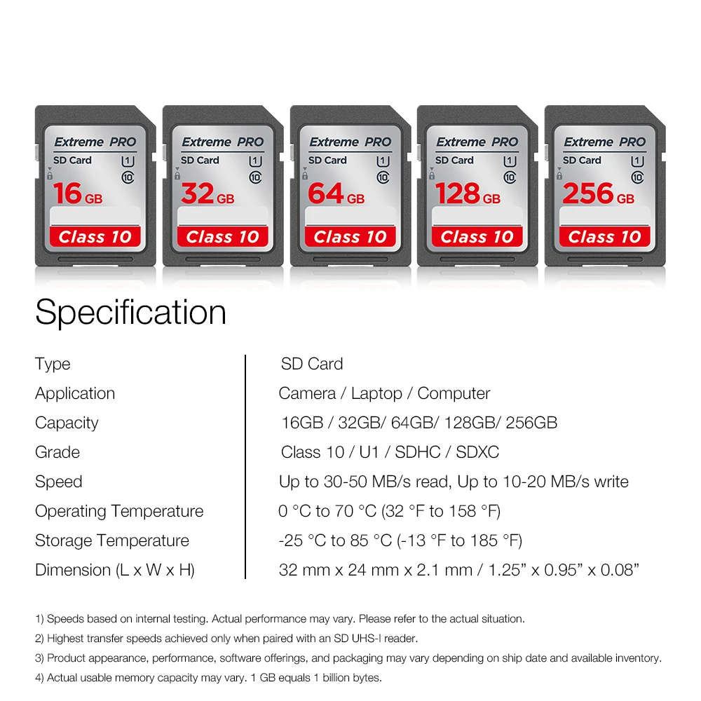 Скорость SD-карты основана на внутреннем тестировании; производительность может быть ниже в зависимости от хост-устройства, интерфейса, условий использования и других факторов.
