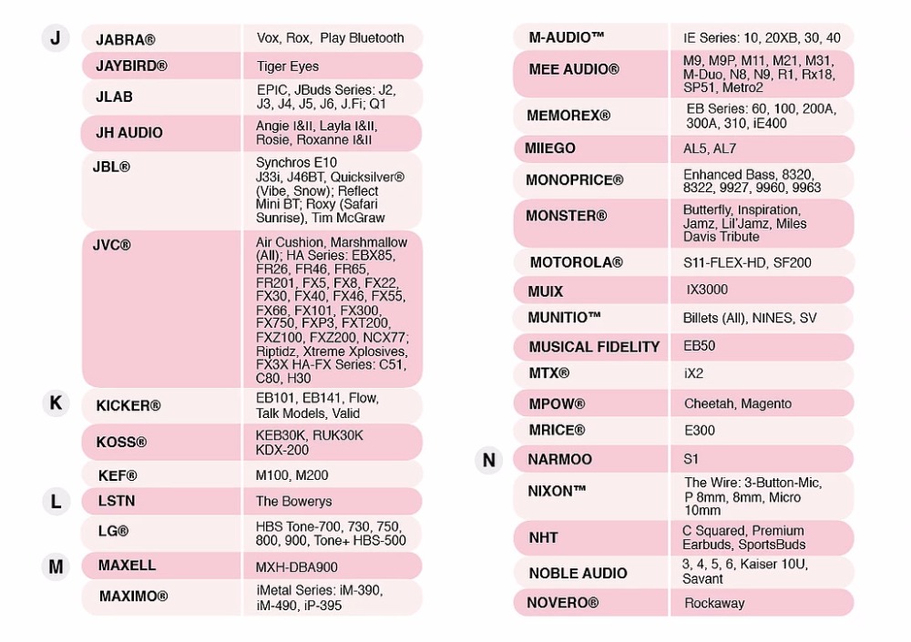 • Совместимость с брендами: 64 Audio, Accoustune, AKG, Artio, BGVP, BLON, Campfire Audio, Canal Works, CCA, Аккорд и мажор, DUNU, Earsonics, Empire Ears, Fender, FiO, final, FitEar, HIFIMAN, iBasso, INTime, JH Audio, Kinera, KZ, Moondrop, Благородное аудио, радиус, See Audio, Sennheiser, Shanling, Sony, Tanchjim, Thieaudio, Tin Hifi, TRN, Unique Melody и многое другое
